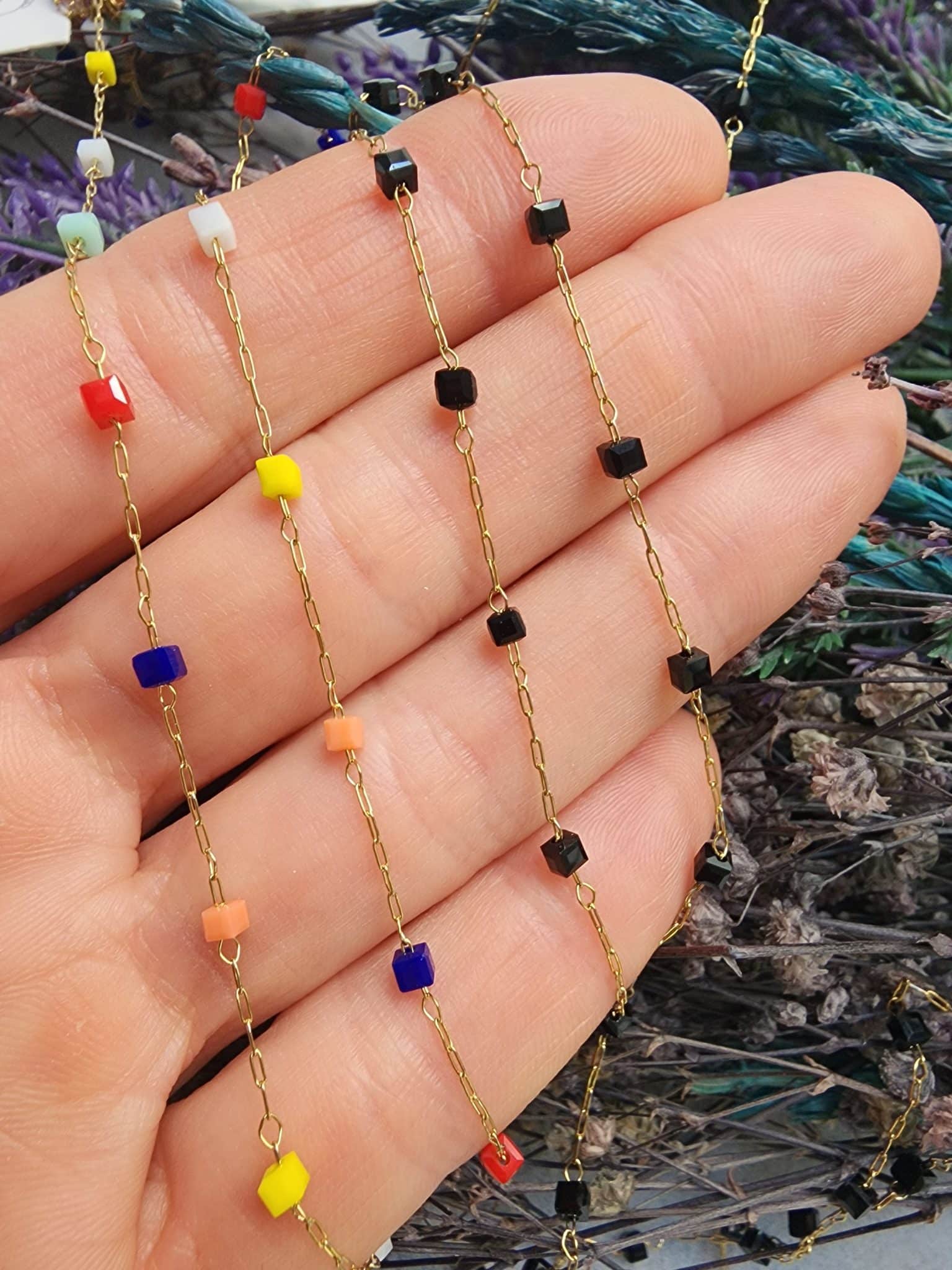 Küp Kristalli Gold Çelik Takı Zinciri :