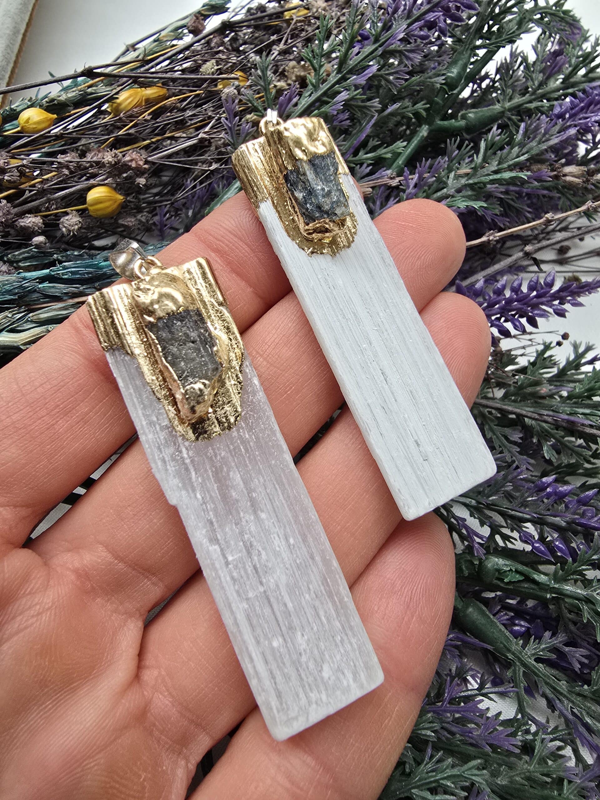 Kyanit Taşlı Çubuk Selenit Taşı Kolye Ucu