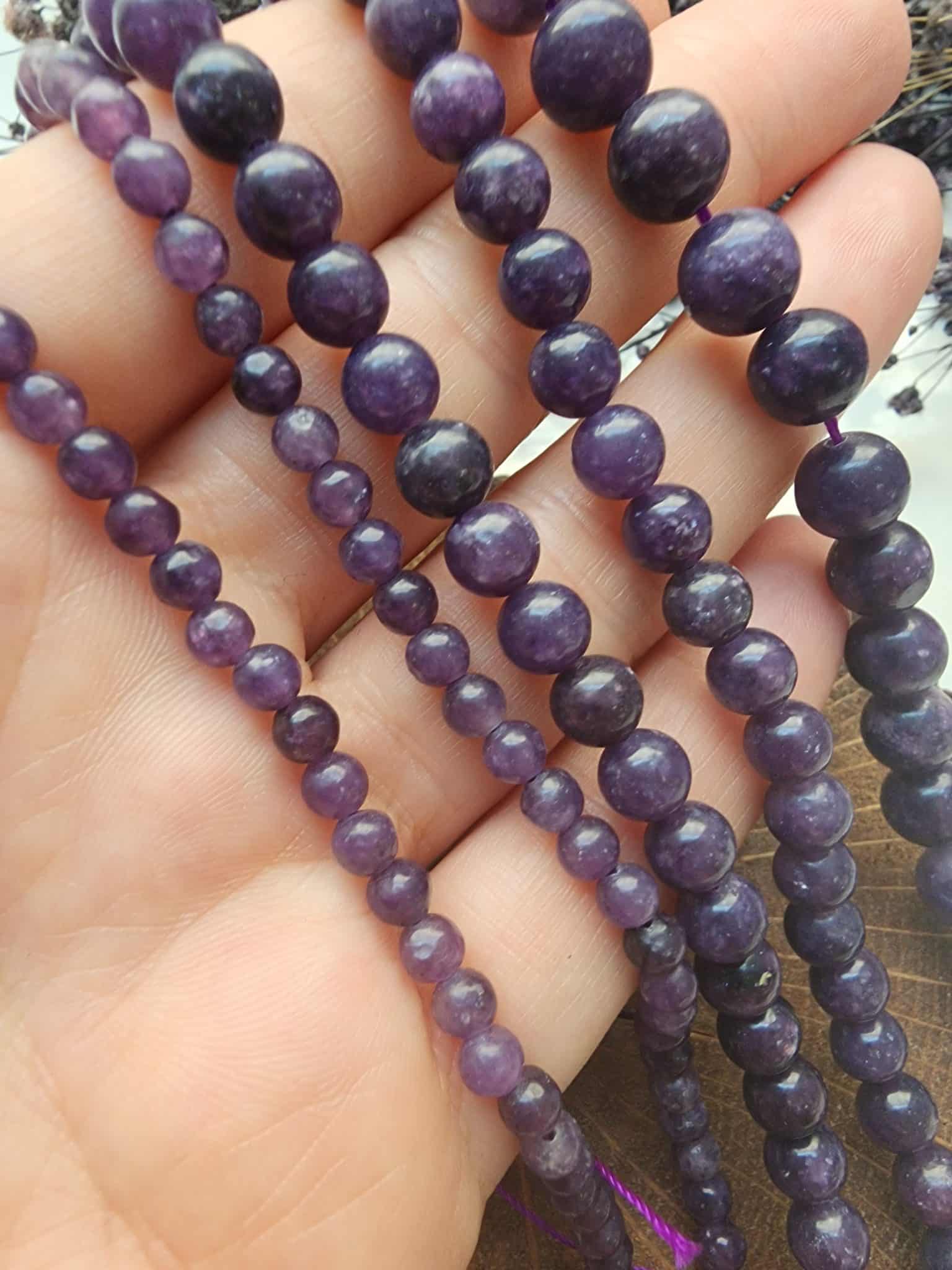 - 1 dizi 6 MM Lepidolite Taşında 62-64 Adet Doğal Taş Boncuk Bulunur.