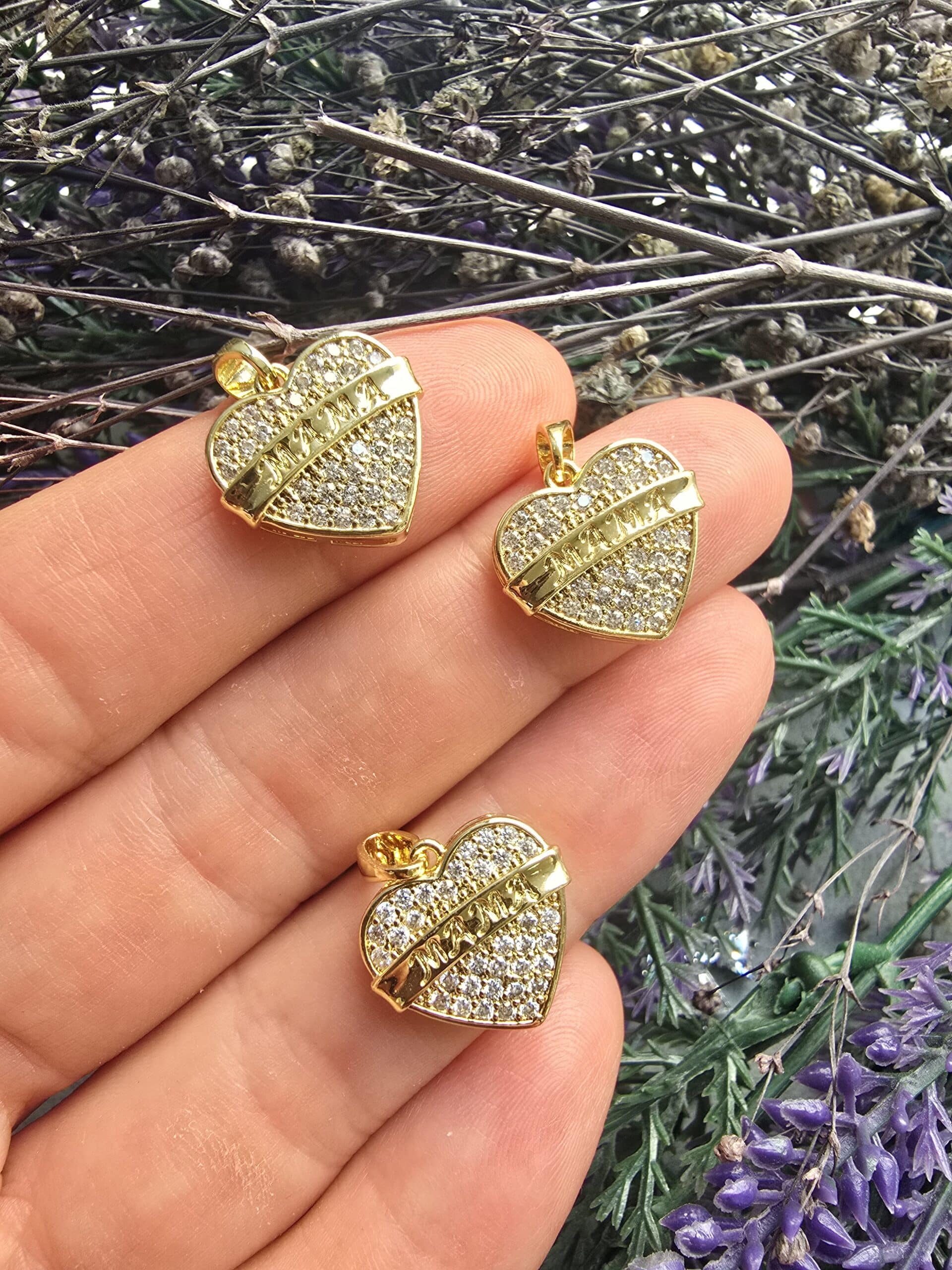 MAMA Yazılı Kalp Charm Kolye Ucu