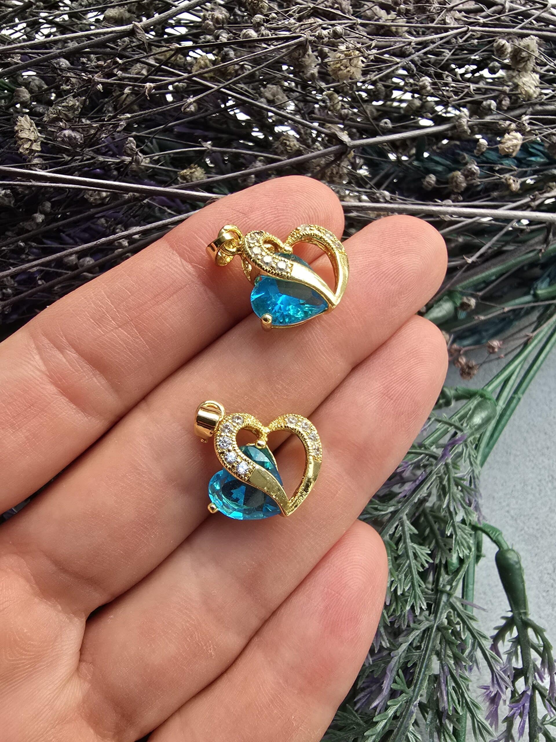 Mavi Taşlı Kalp Charm Kolye Ucu