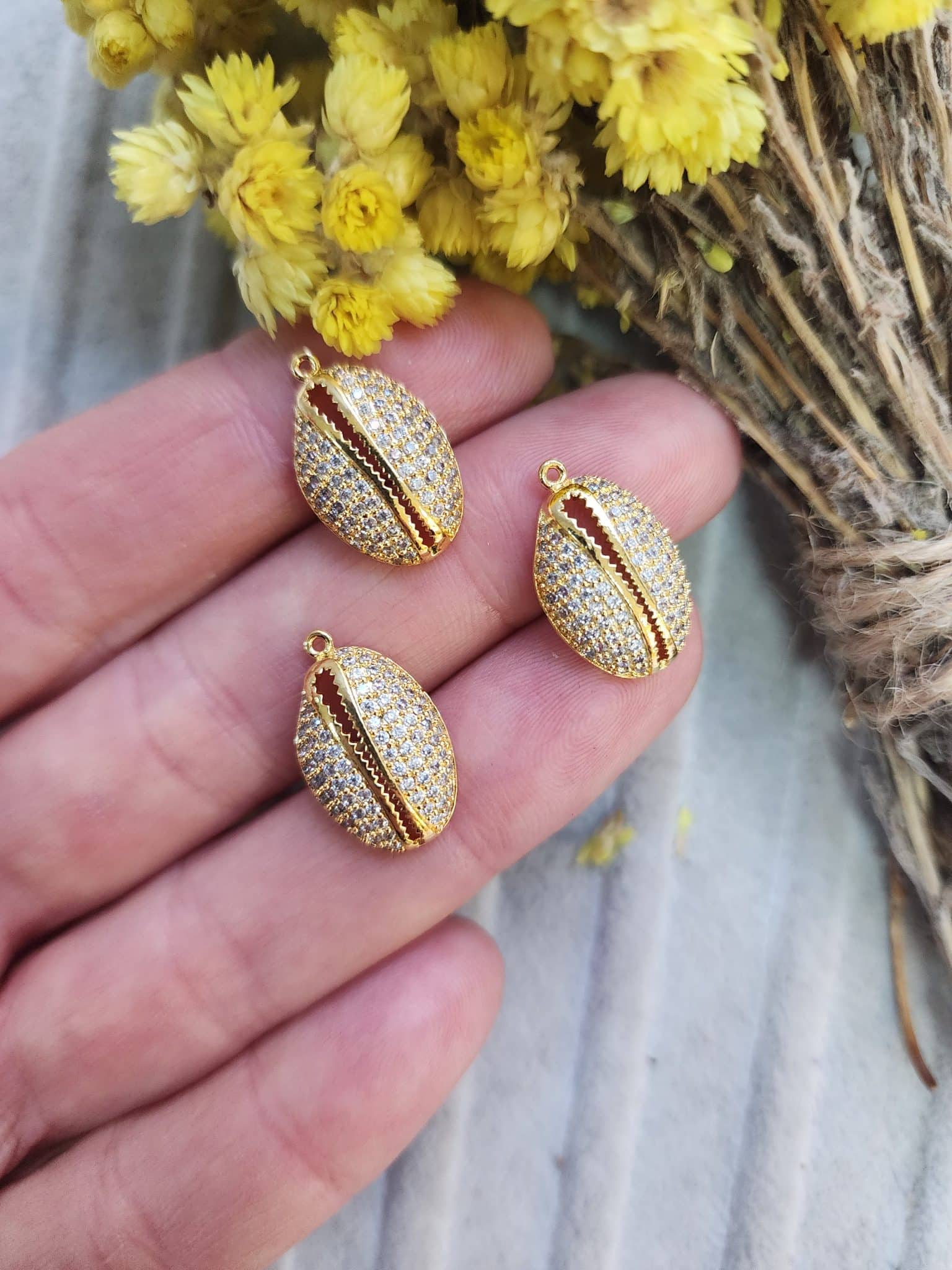 Midye Zirkon Taşlı Kolye Ucu