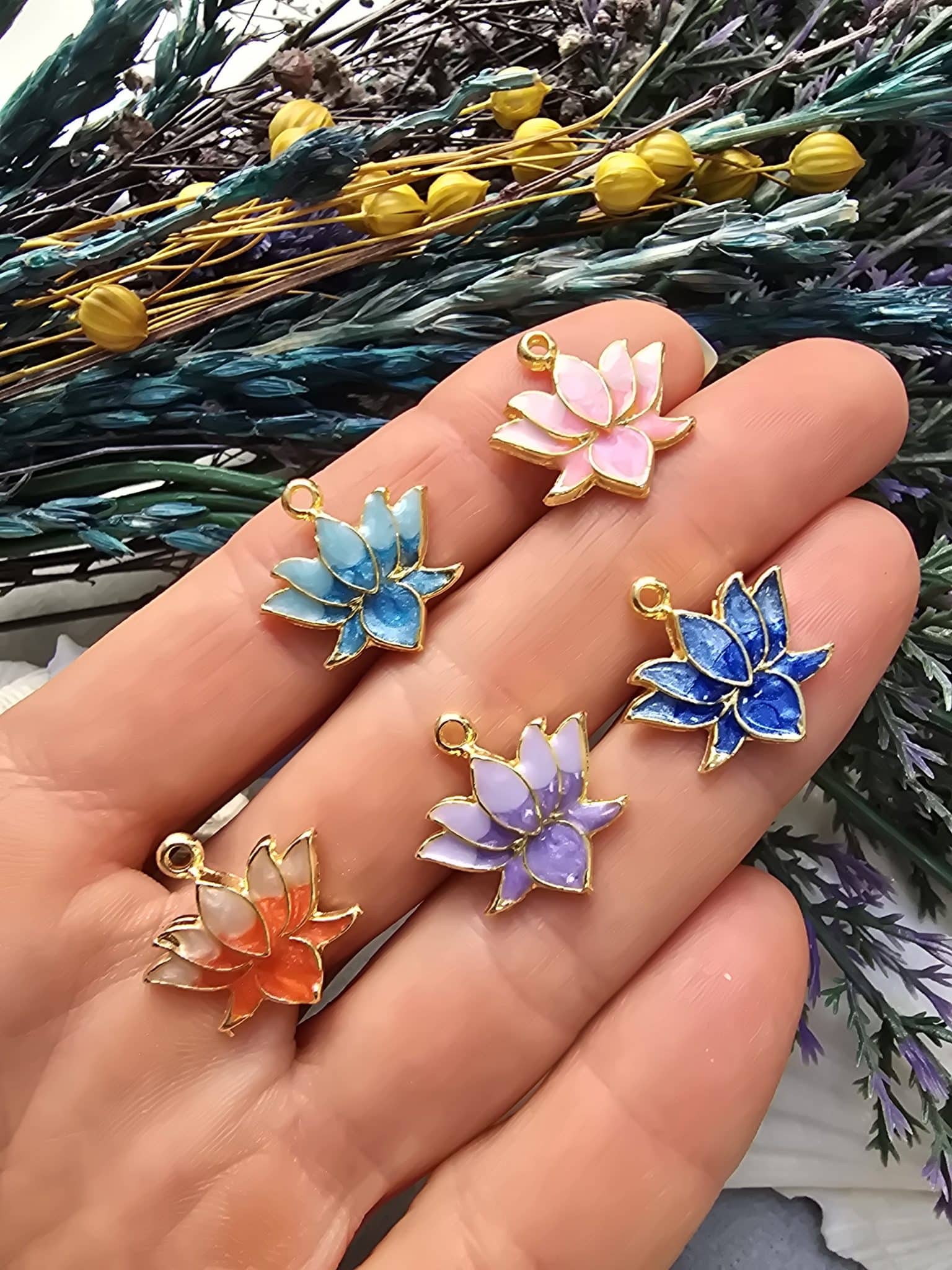 Mineli Lotus Çiçeği Kolye Ucu