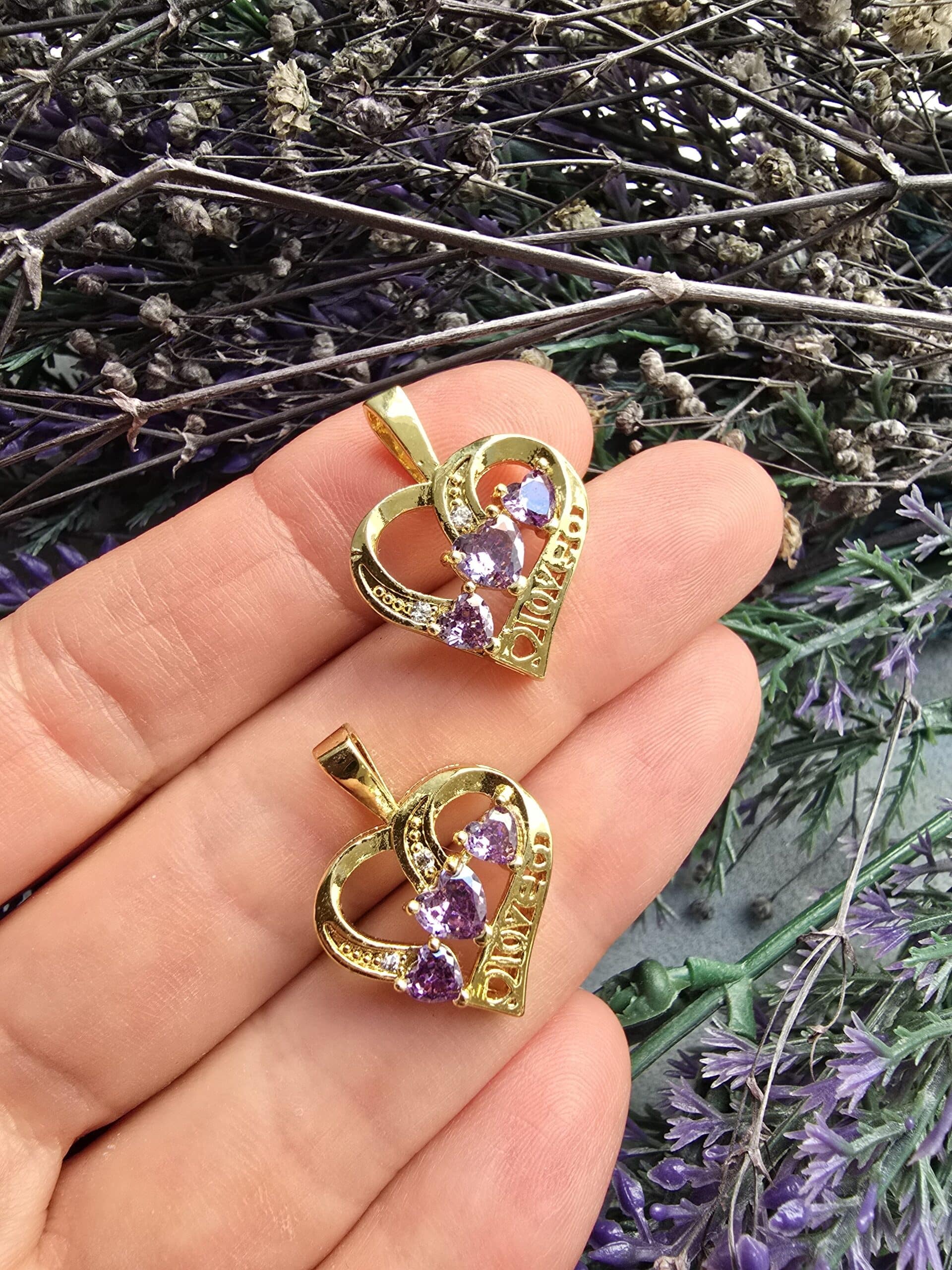 Mor Taşlı Kalpler Charm Kolye Ucu