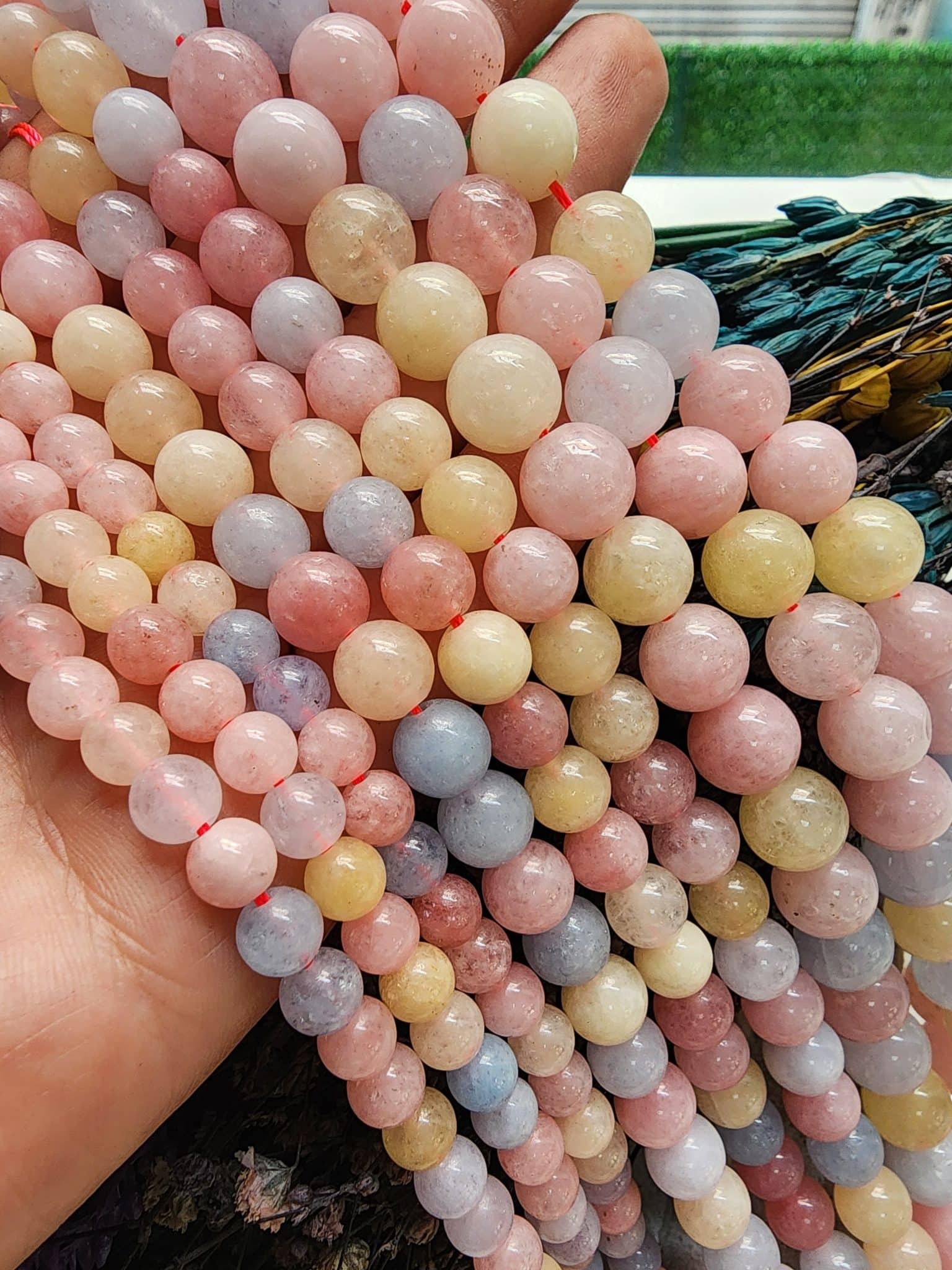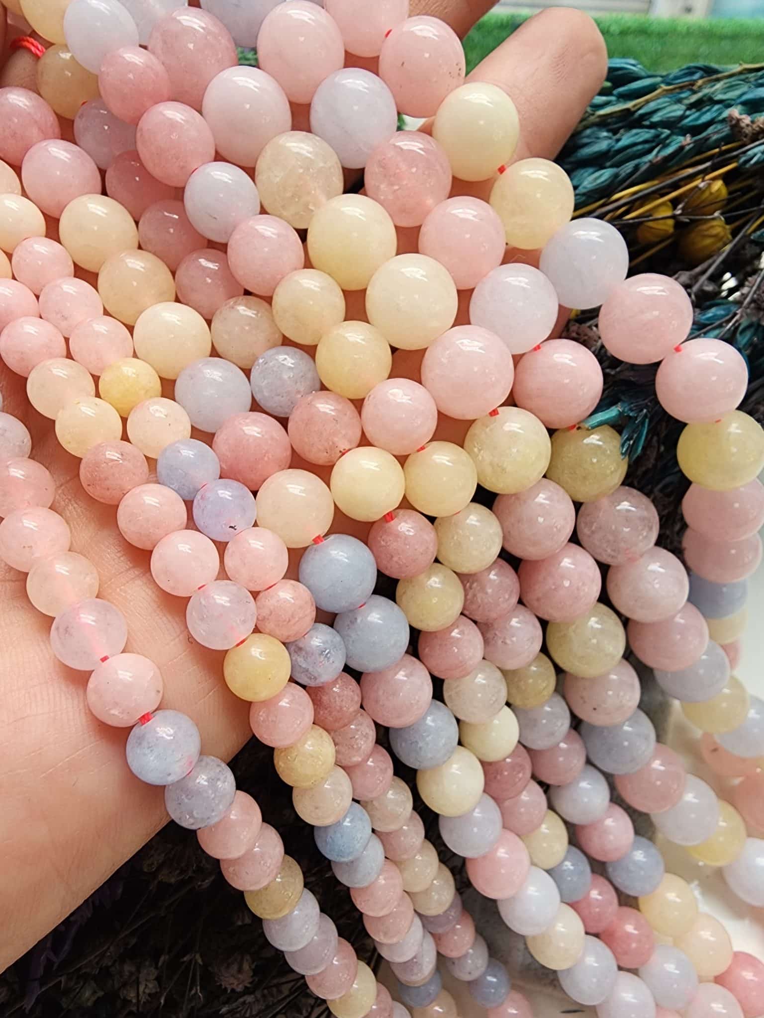 - 1 dizi 10 MM Morganit Taşında 37-38 Adet Doğal Taş Boncuk Bulunur..
