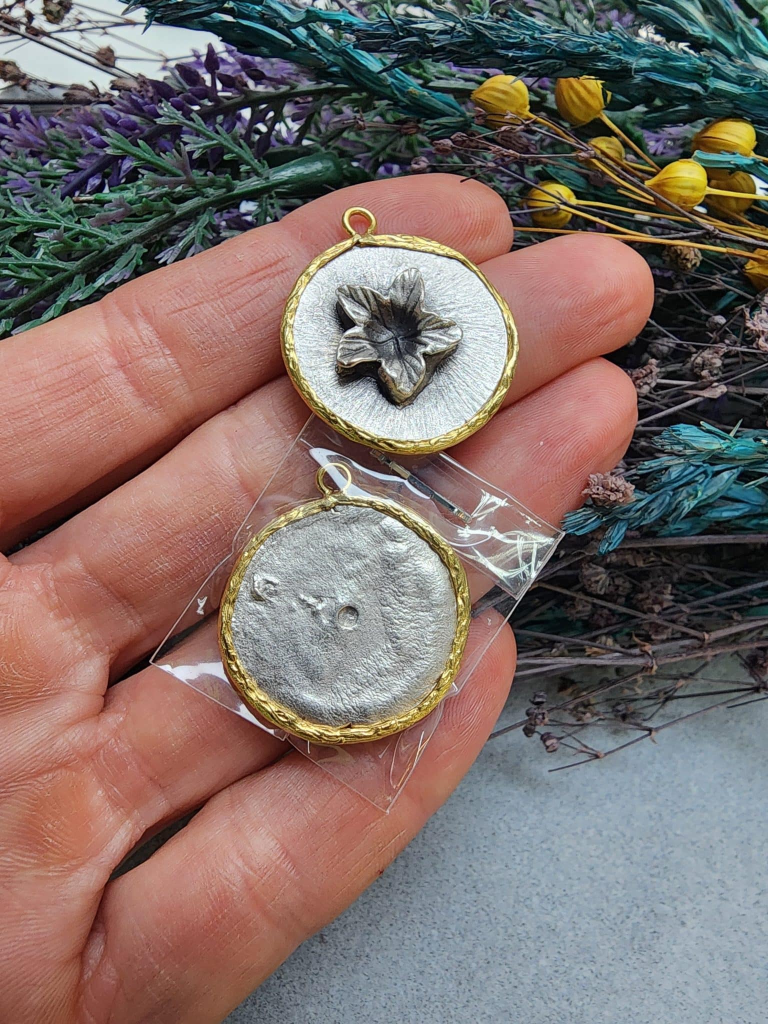 Orkide Kabartmalı Vintage Kolye Ucu :