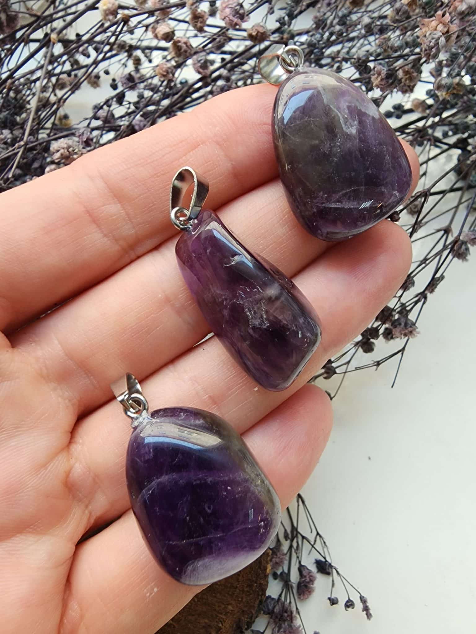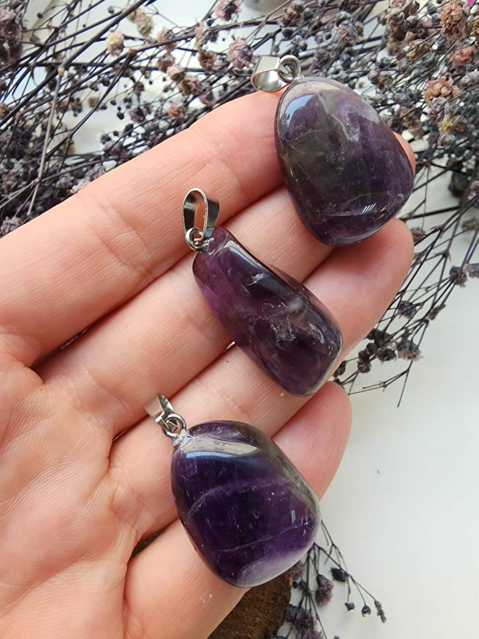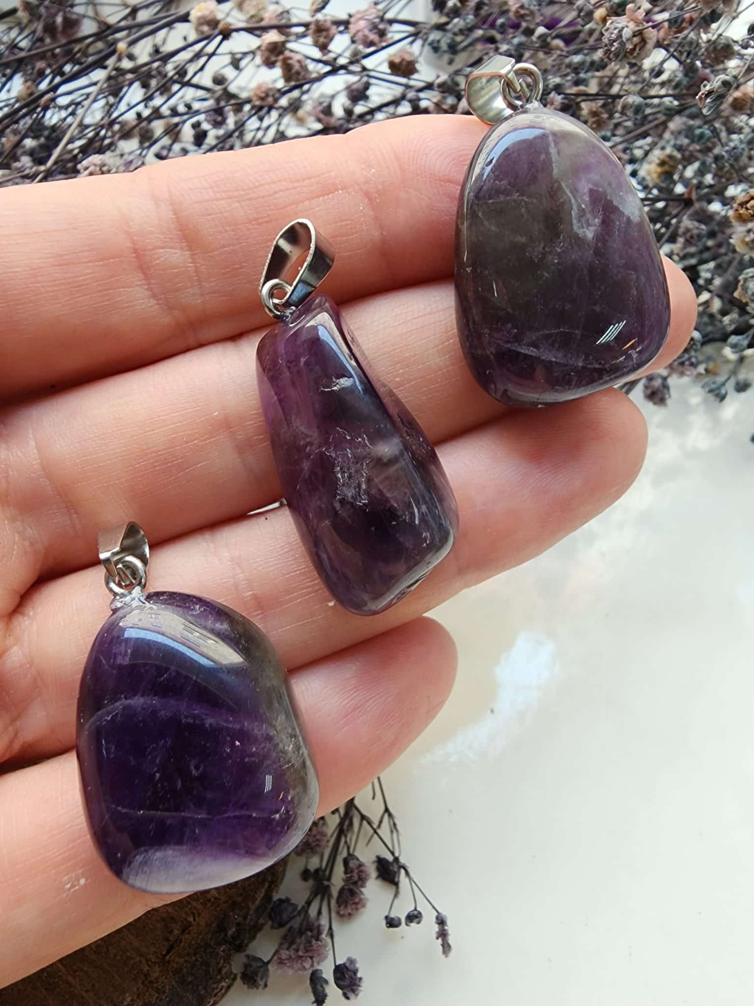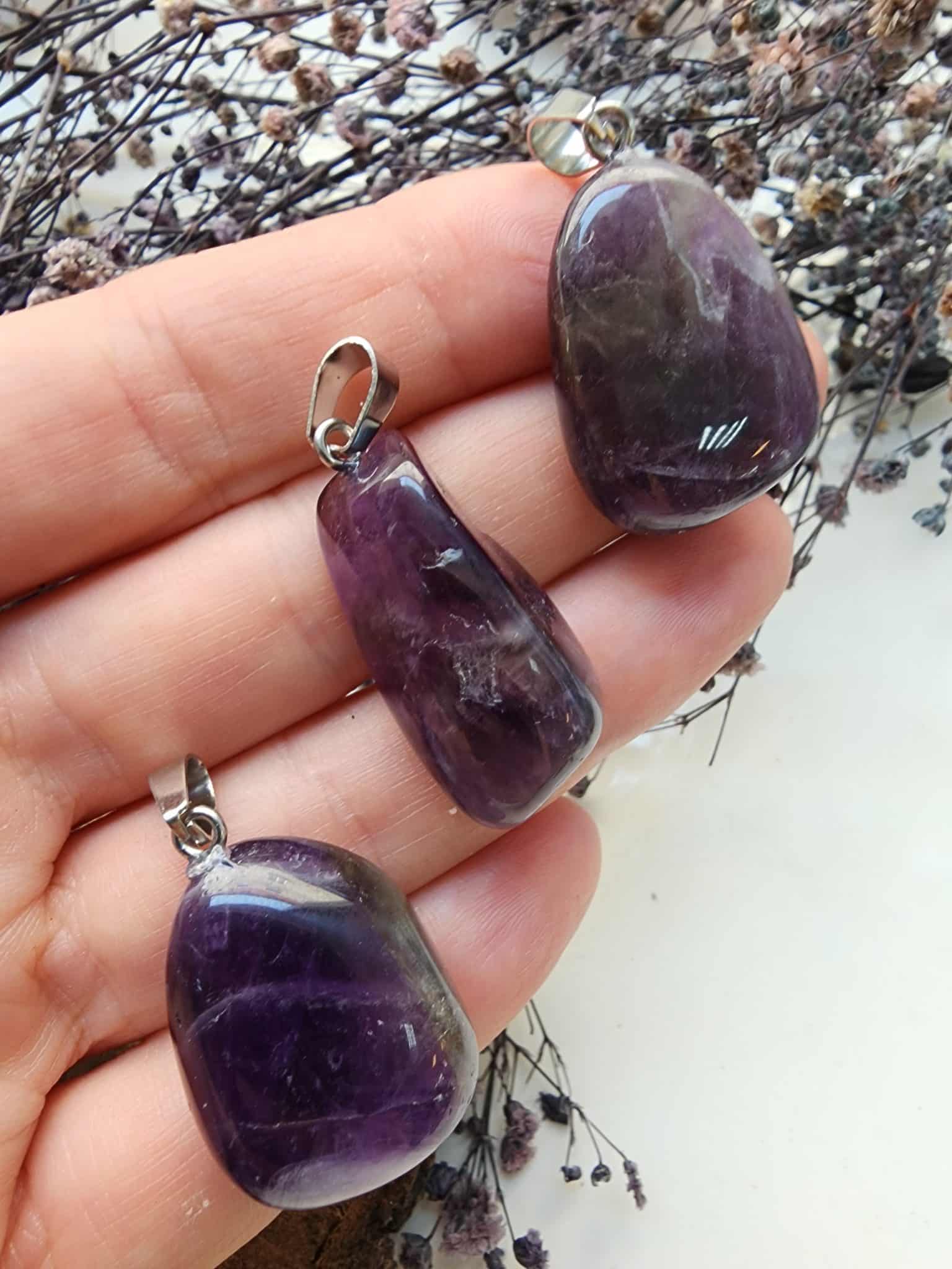 Oval Ametist Doğal Taş Kolye Ucu:
