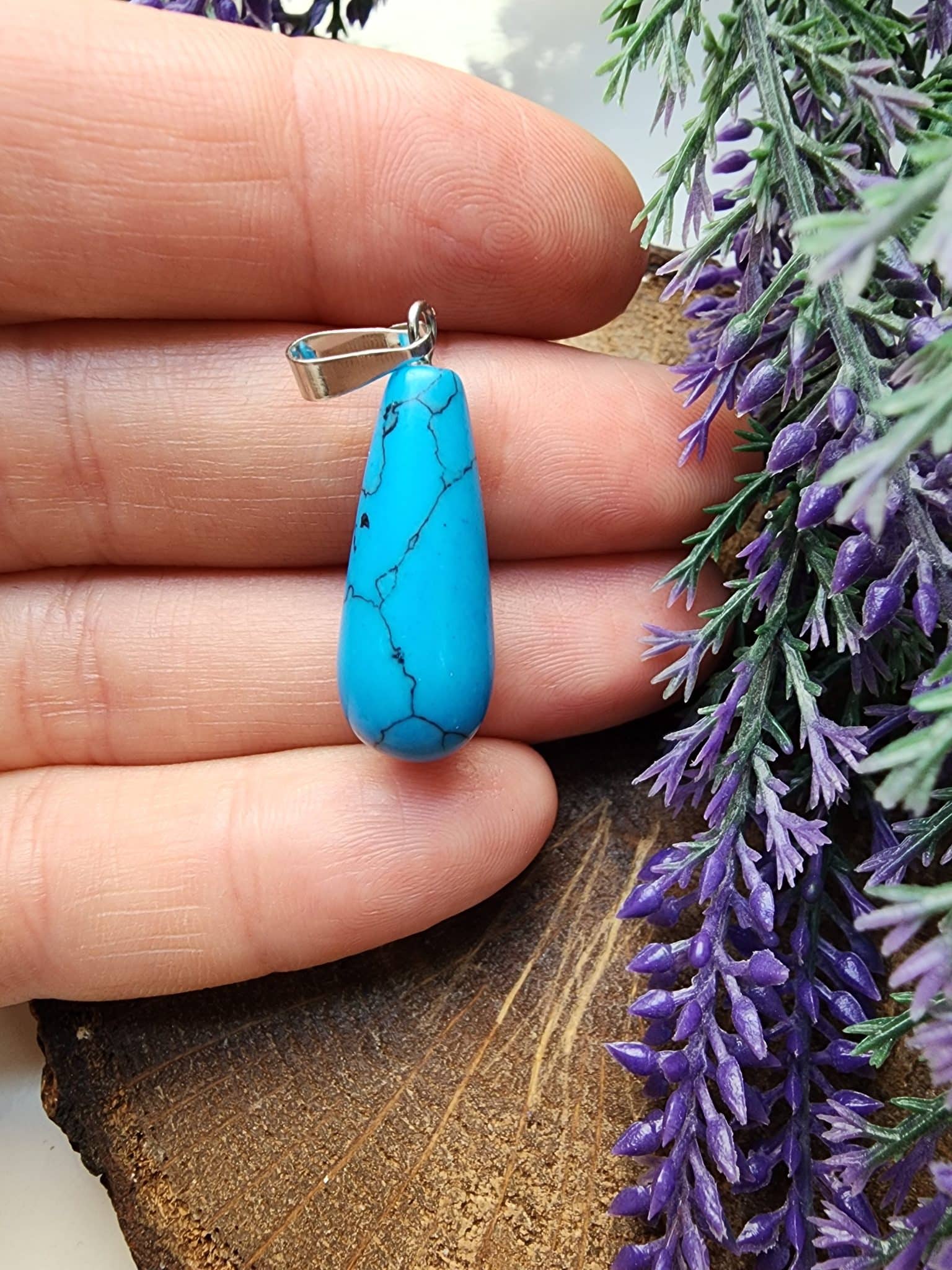 Oval Damla Turkuaz Taşı Kolye Ucu :