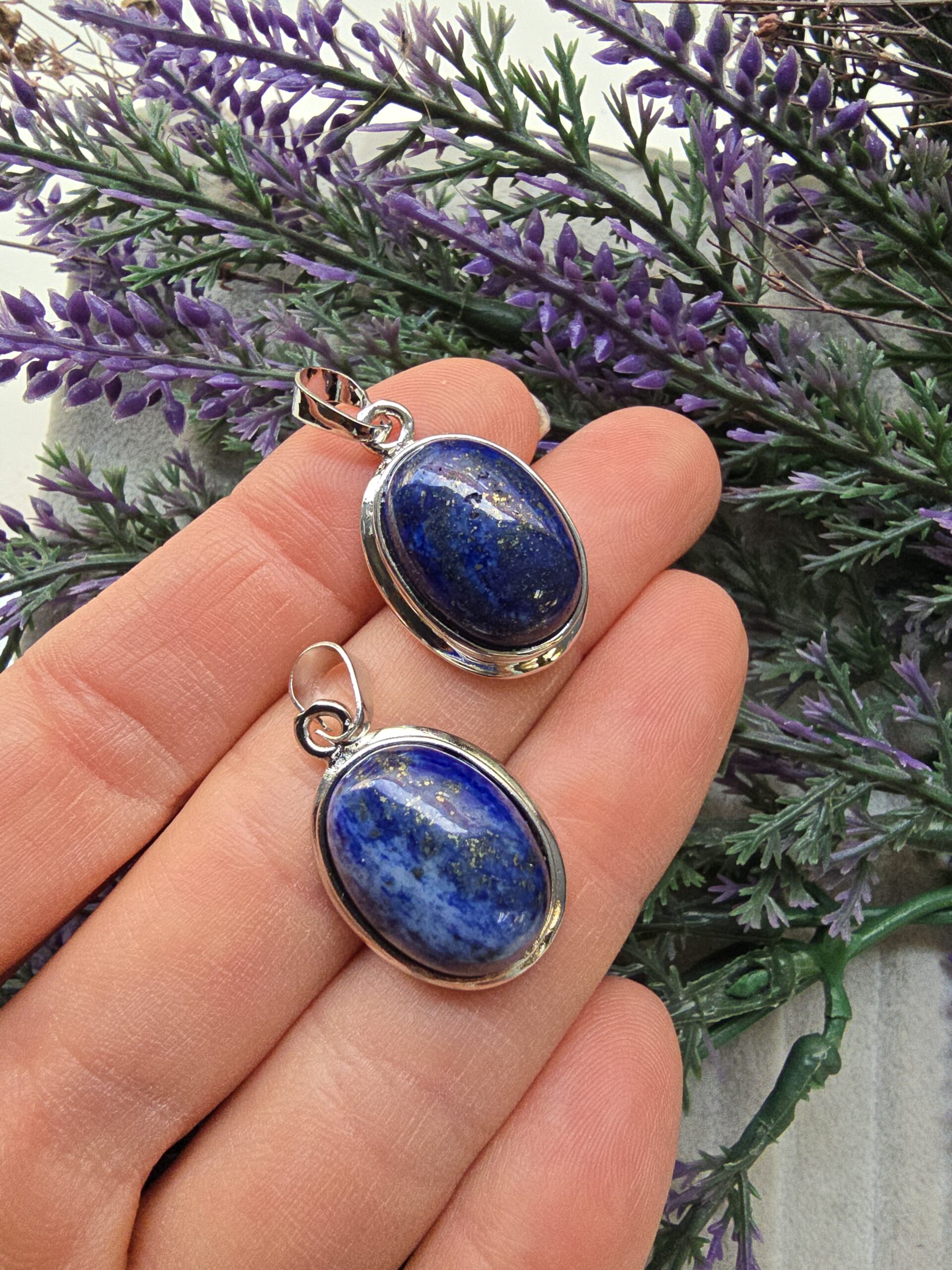 Oval Lapis Doğal Taş Kolye Ucu