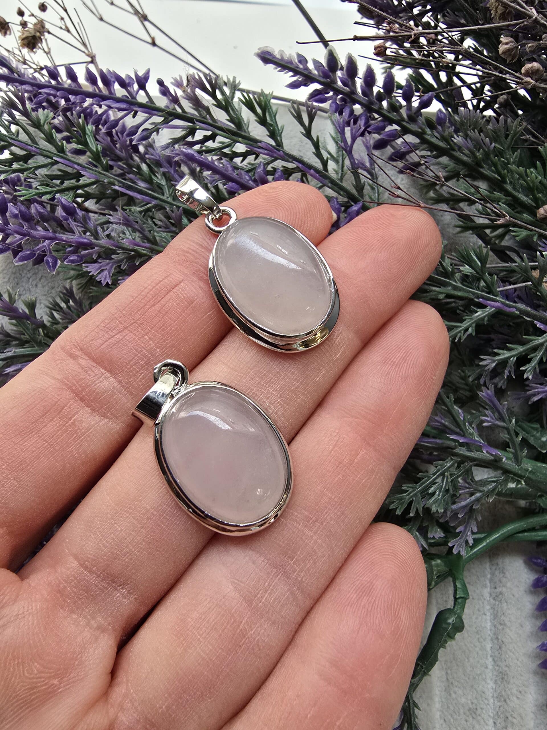 Oval Pembe Kuvars Doğal Taş Kolye Ucu