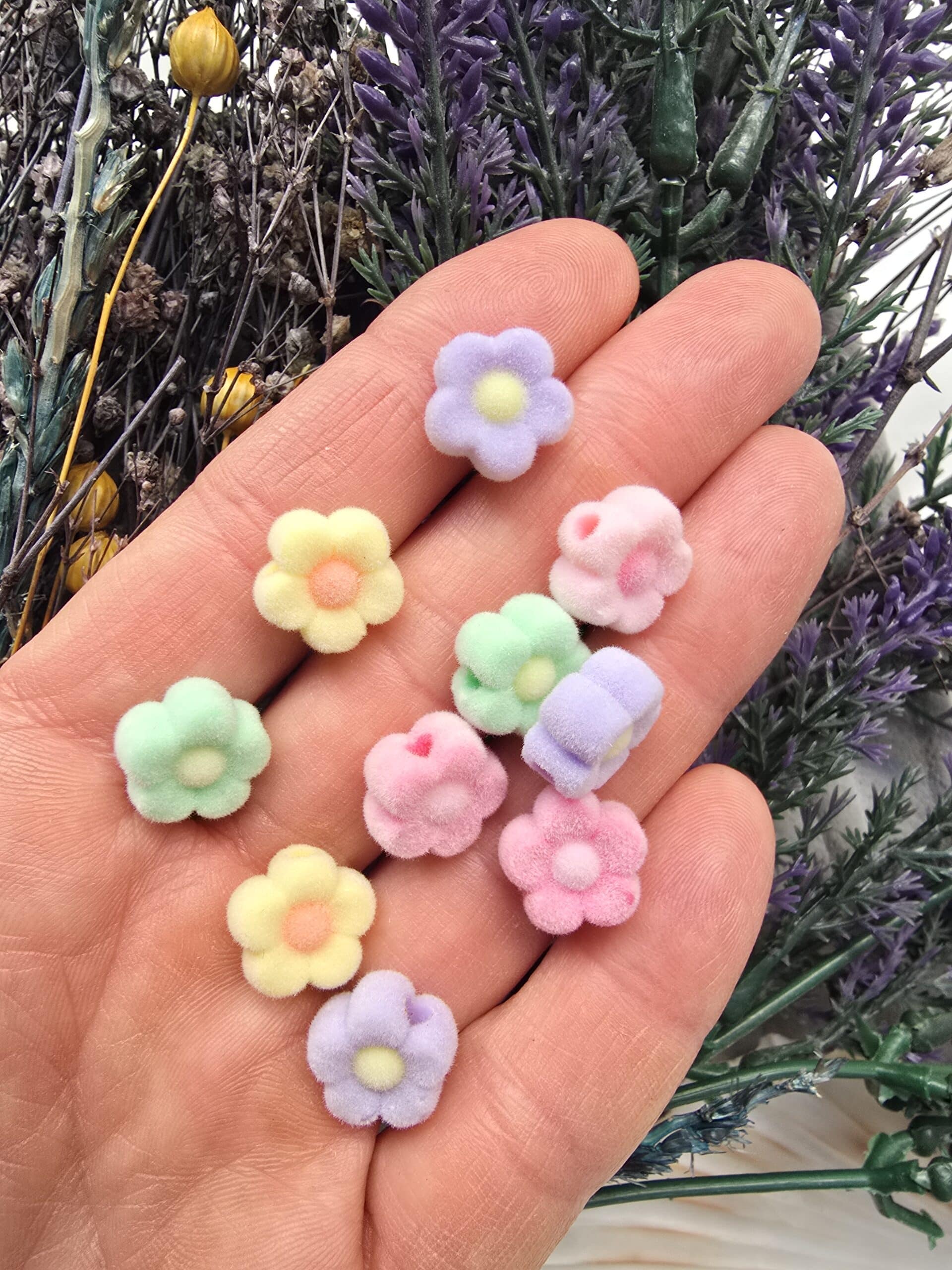 Papatya Şekilli Kadife Yüzeyli Renkli Boncuklar