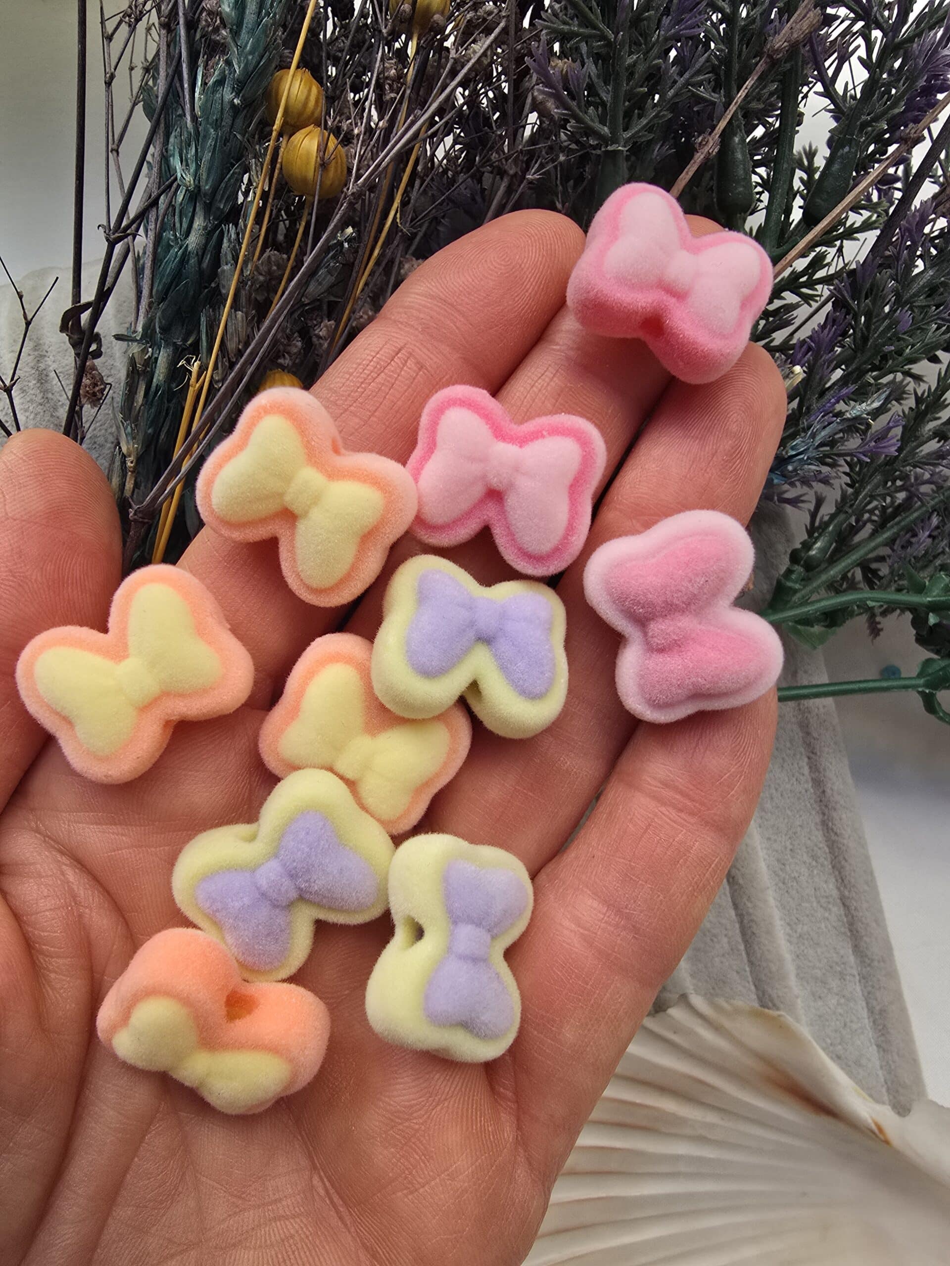 Papyon Şekilli Kadife Yüzeyli Renkli Boncuklar