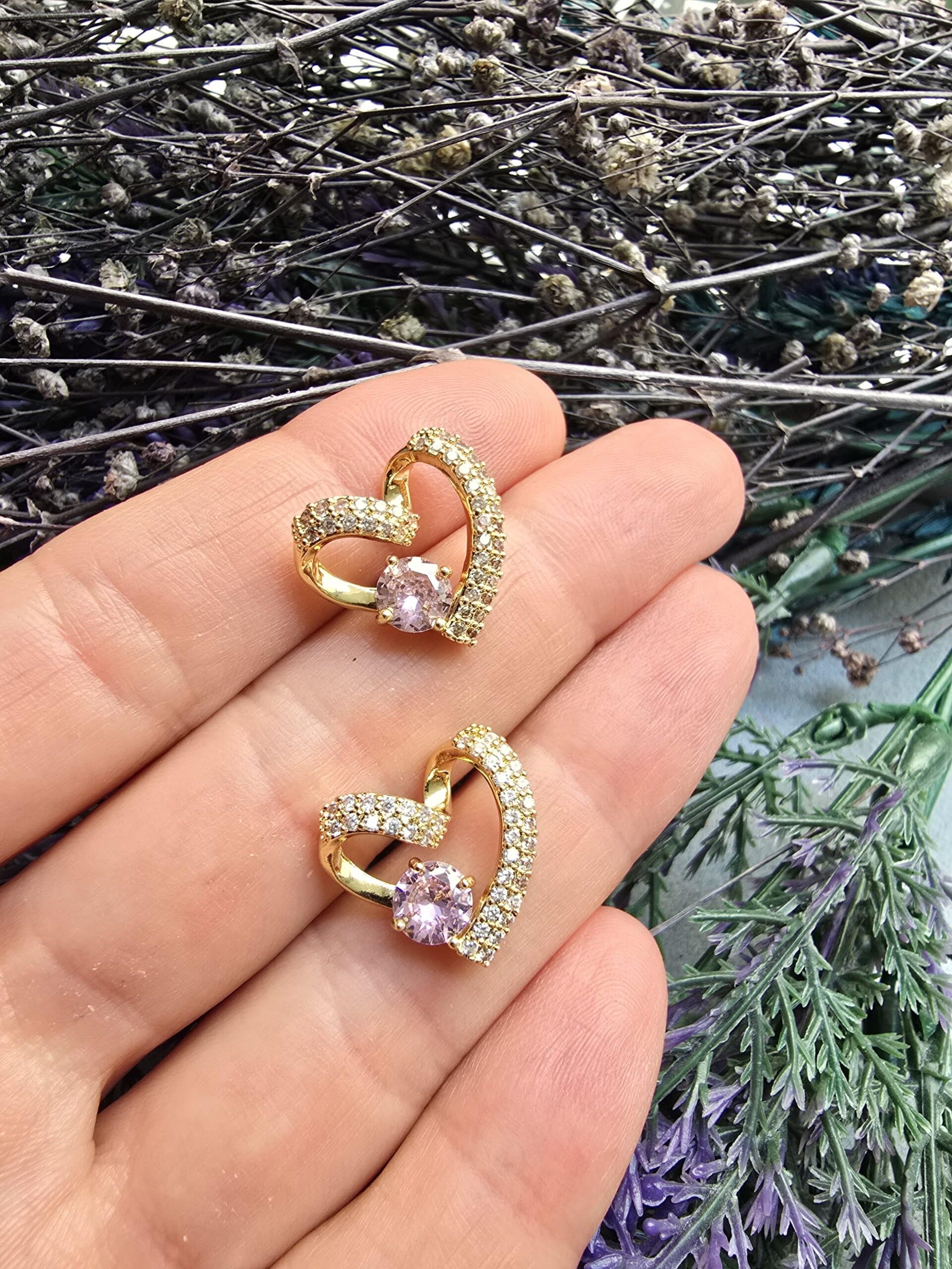 Pembe Taşlı Burma Kalp Yıldız Kolye Ucu