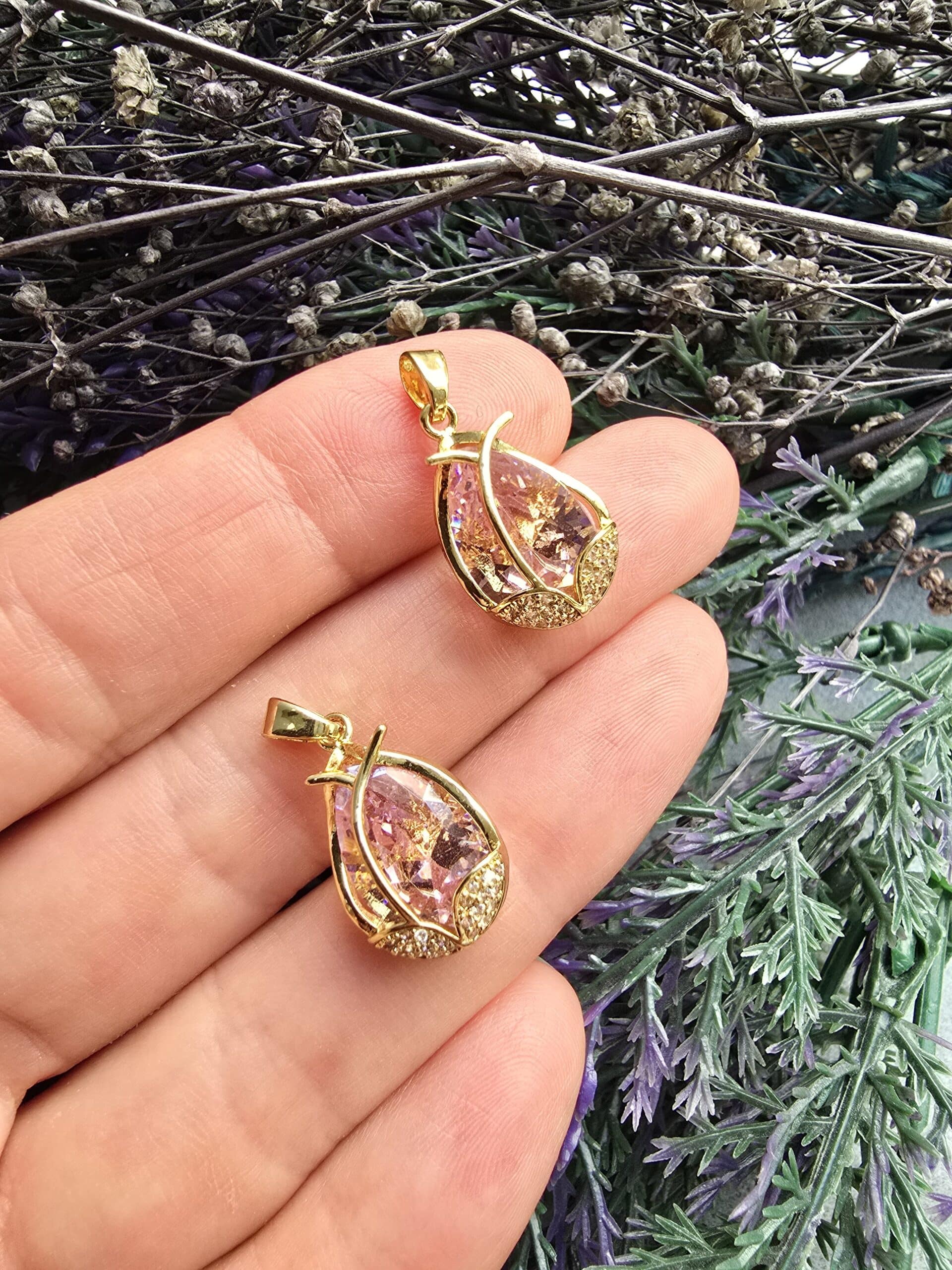 Pembe Taşlı Damla Charm Kolye Ucu