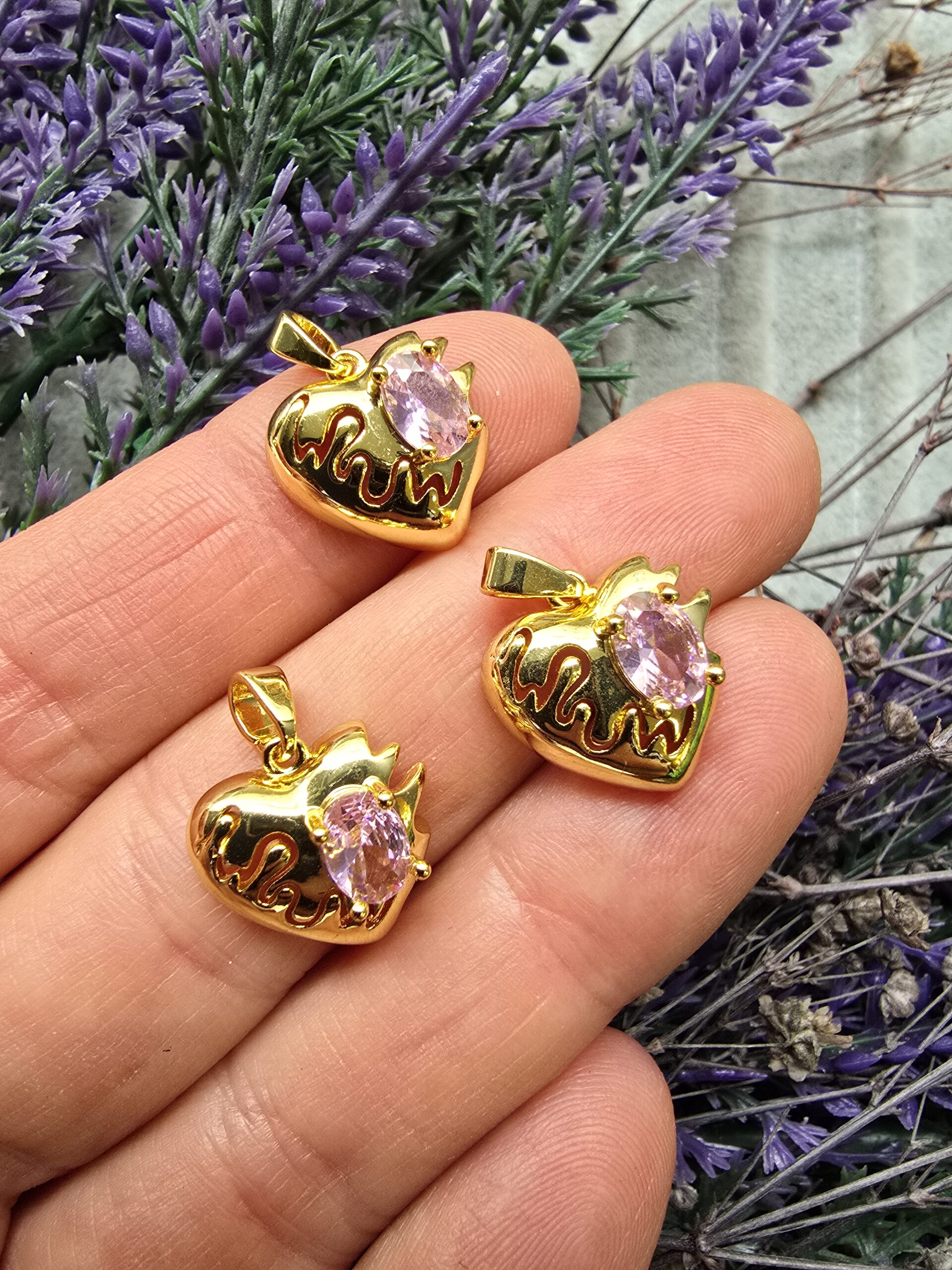Pembe Taşlı Kırık Kalp Zirkon Taşlı Charm