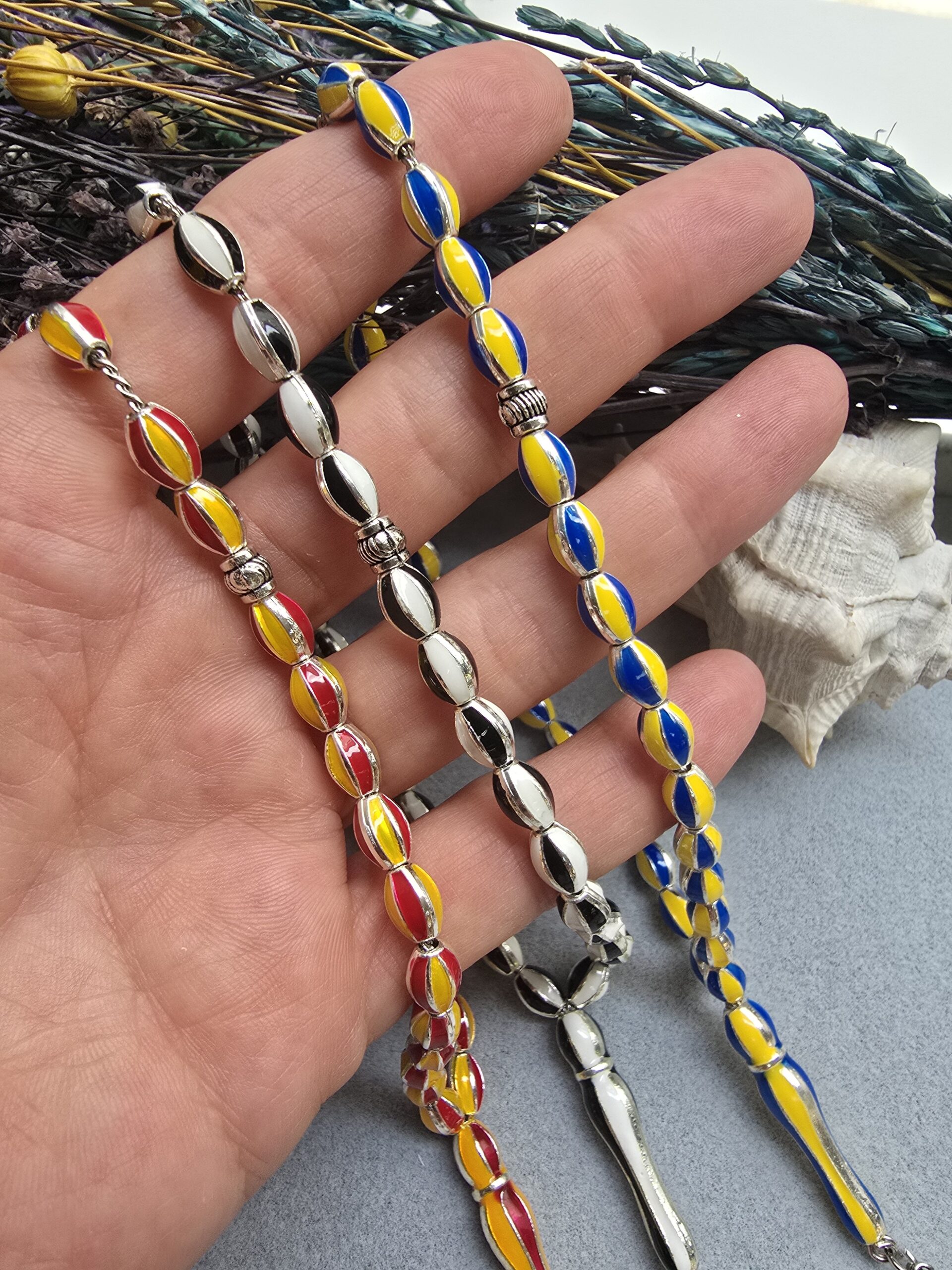 - Tesbihler mineli taraftar renklerinde gümüş renklidir.