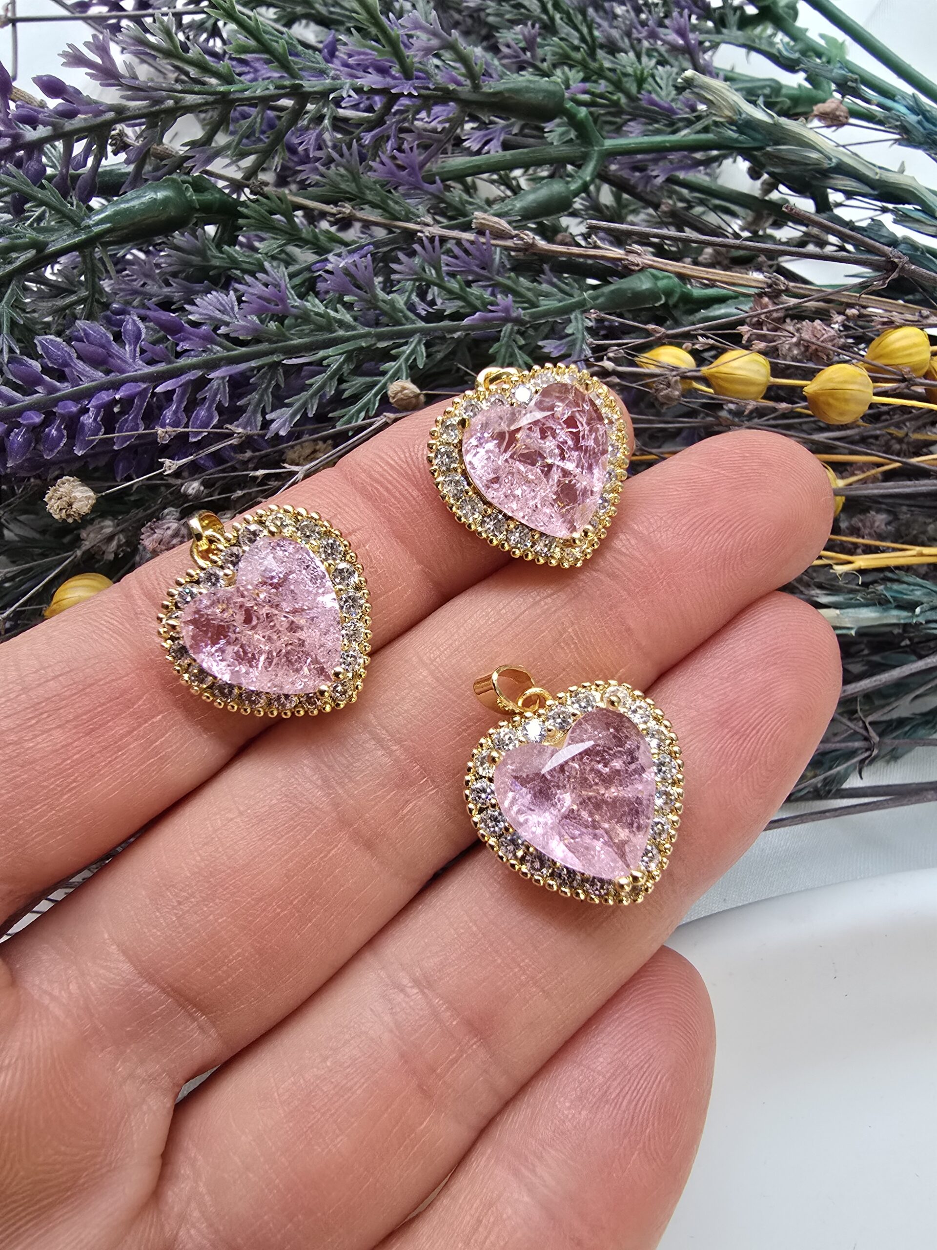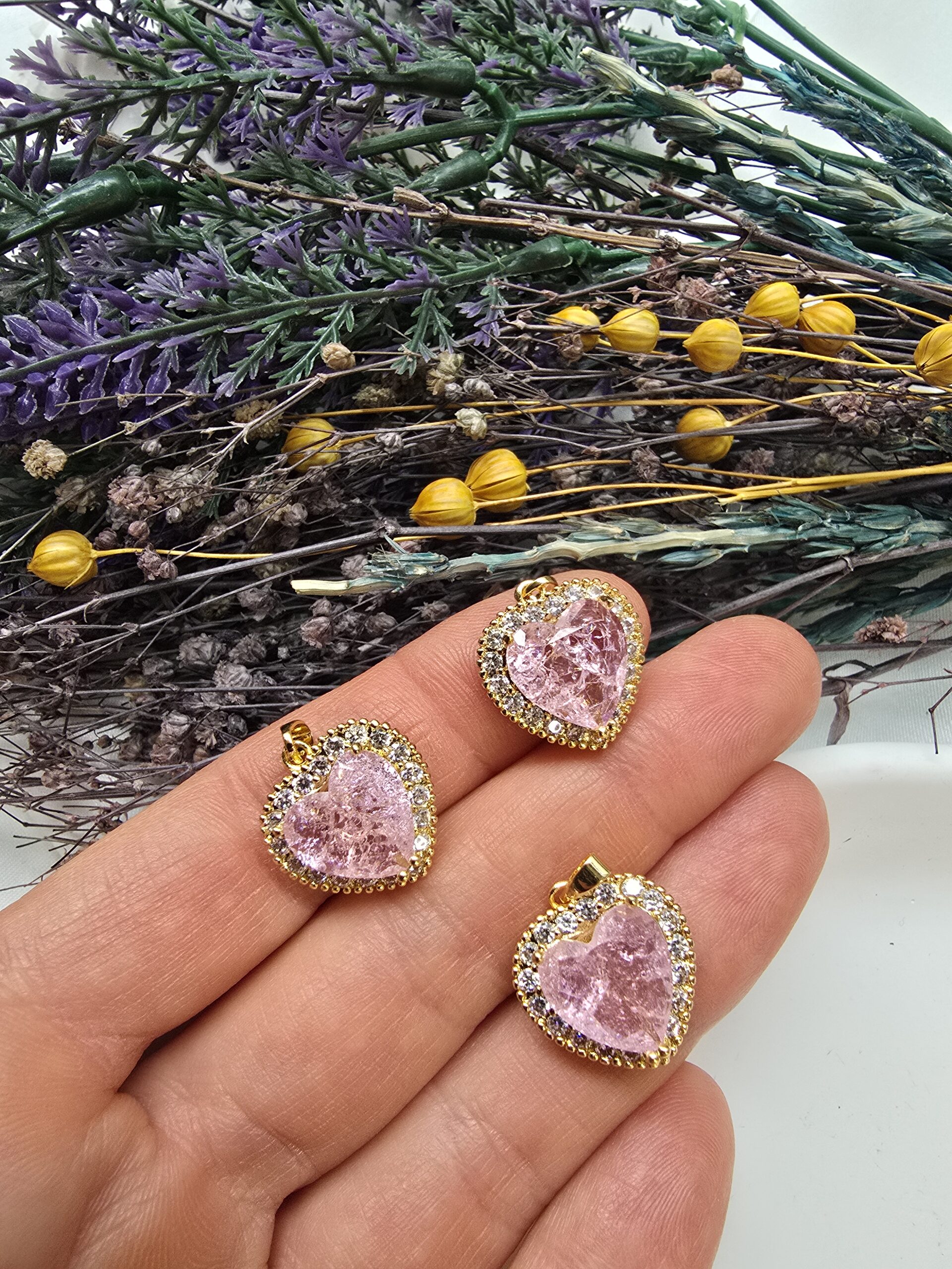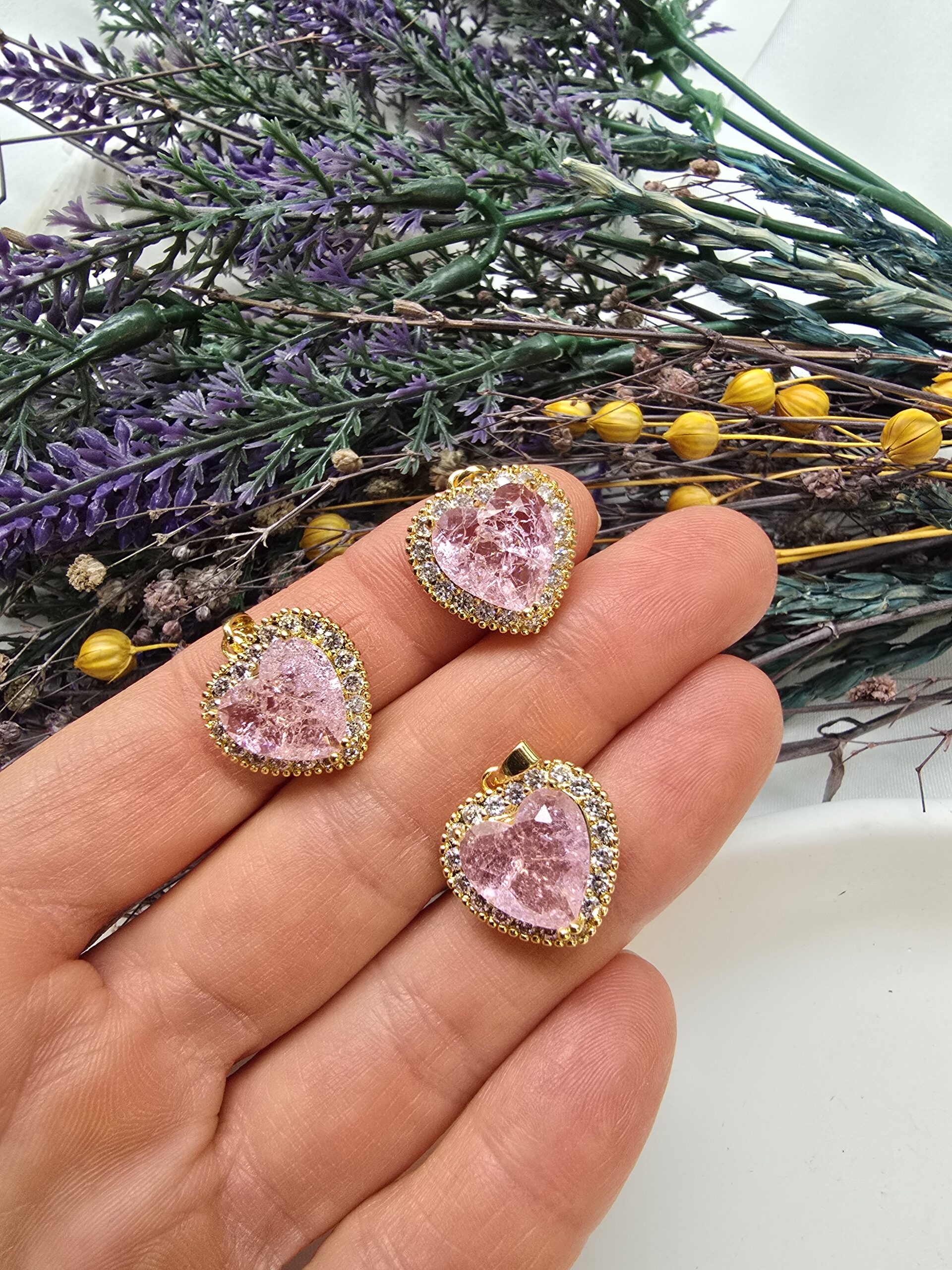 Premium Kalp Zirkon Taşlı Charm