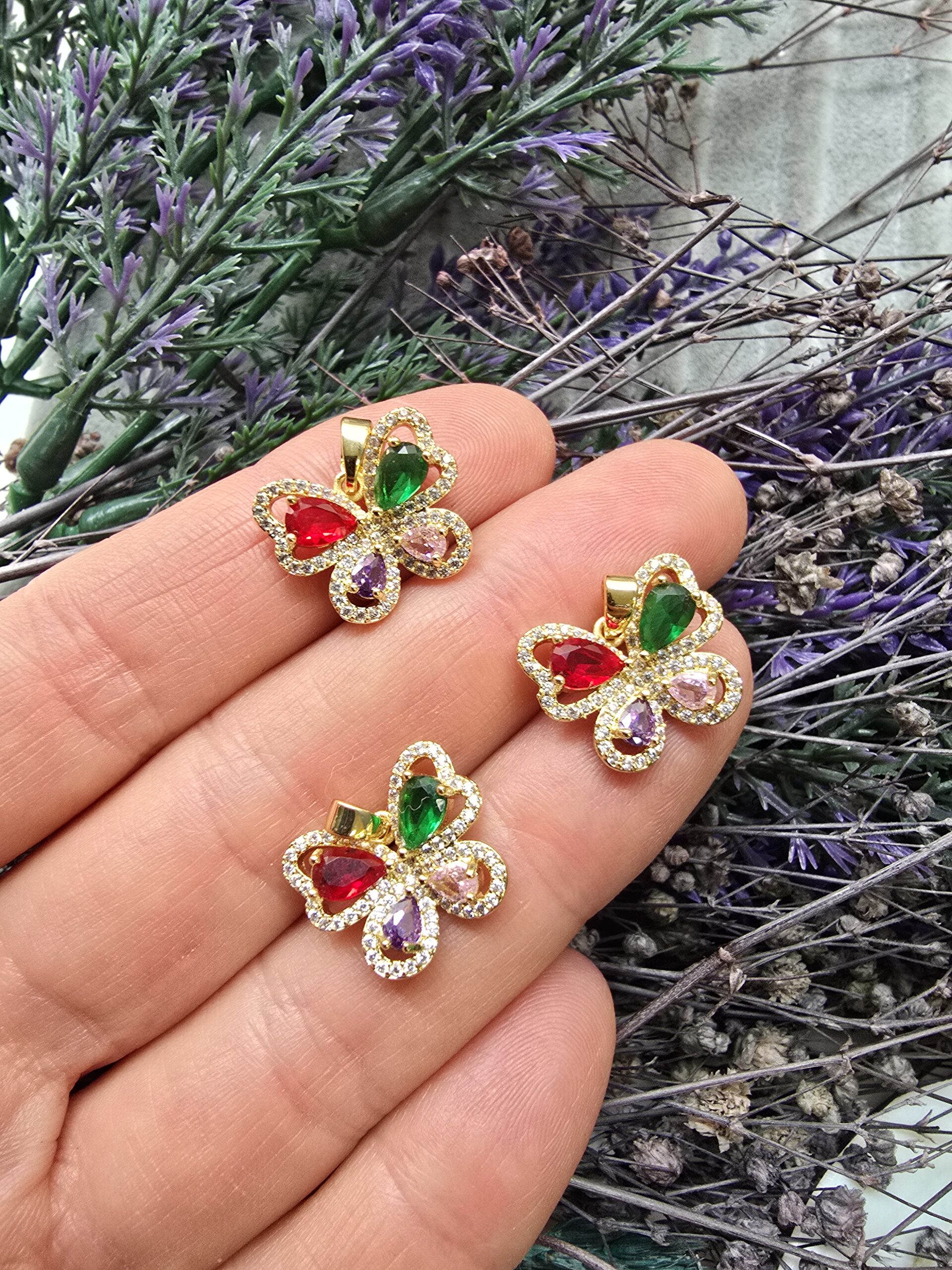 Renkli Kelebek Zirkon Taşlı Charm
