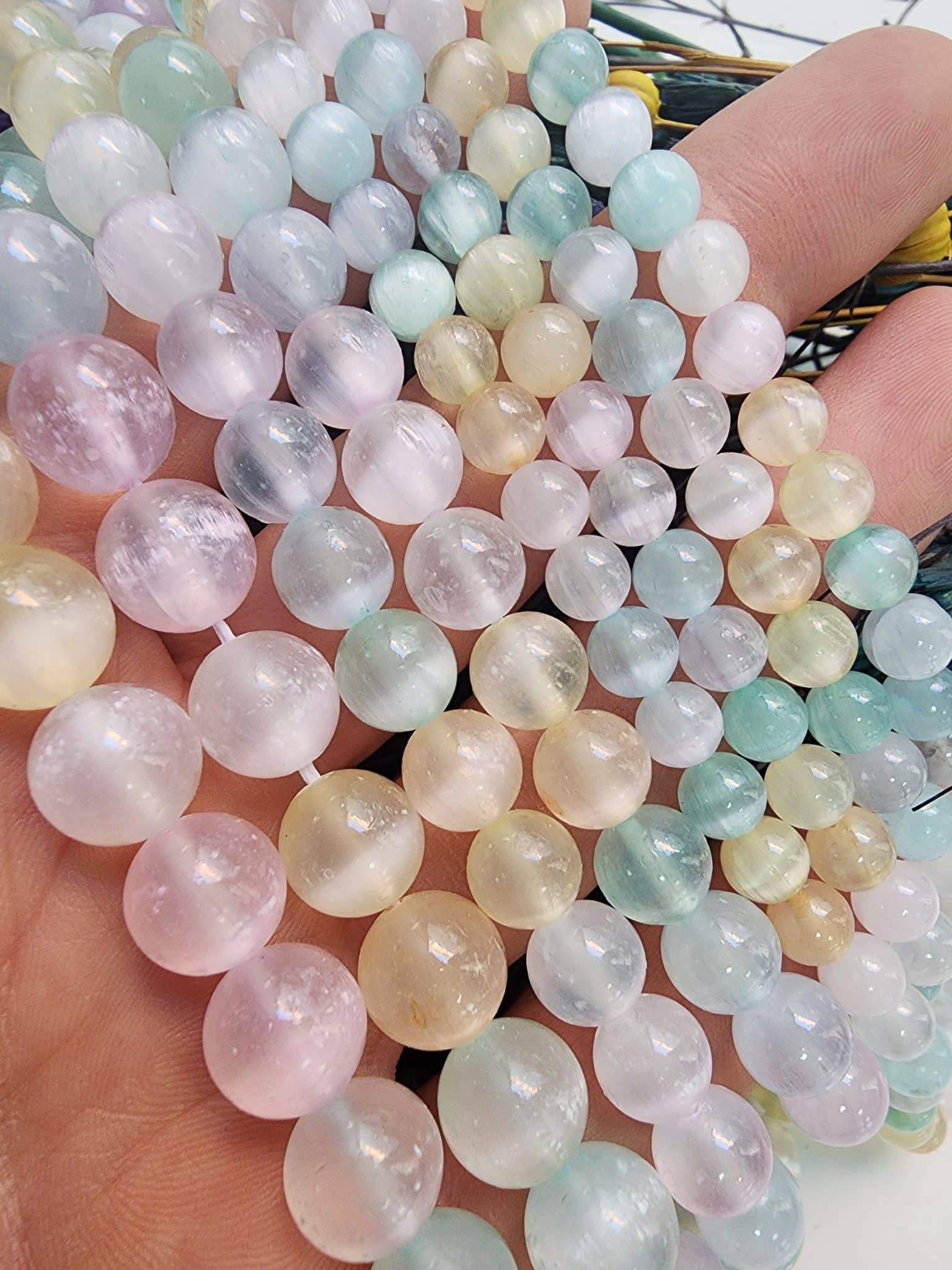 Renkli Mix Doğal Selenit Taşı Dizi