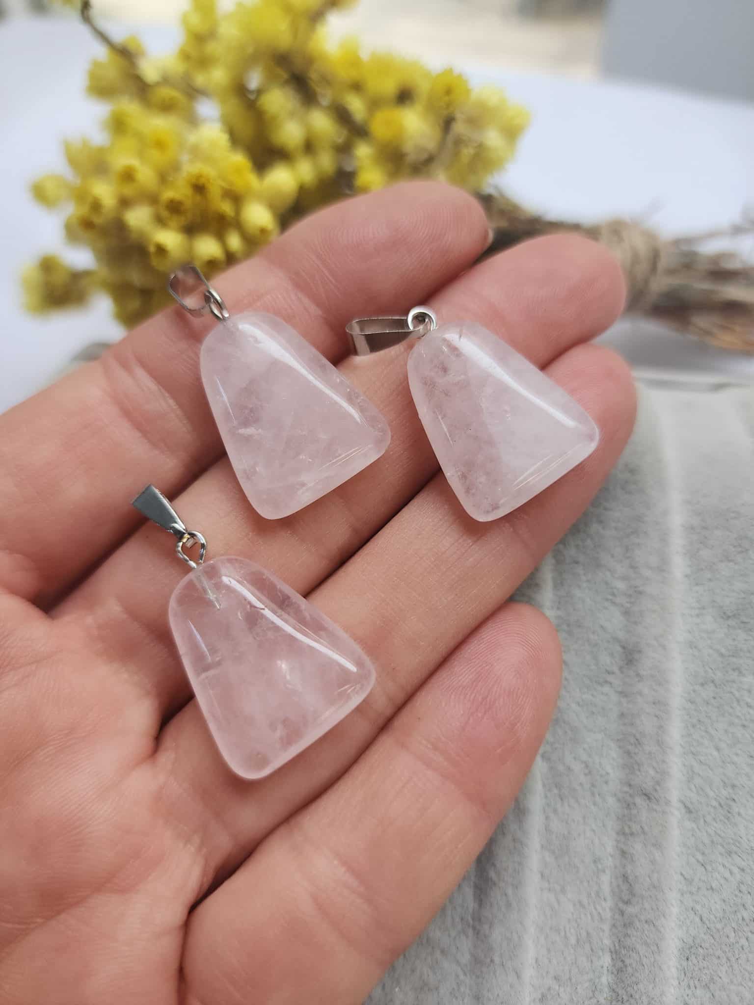 - Sandık Pembe Kuvars taşları kolye ucu olarak kullanılabilir.
