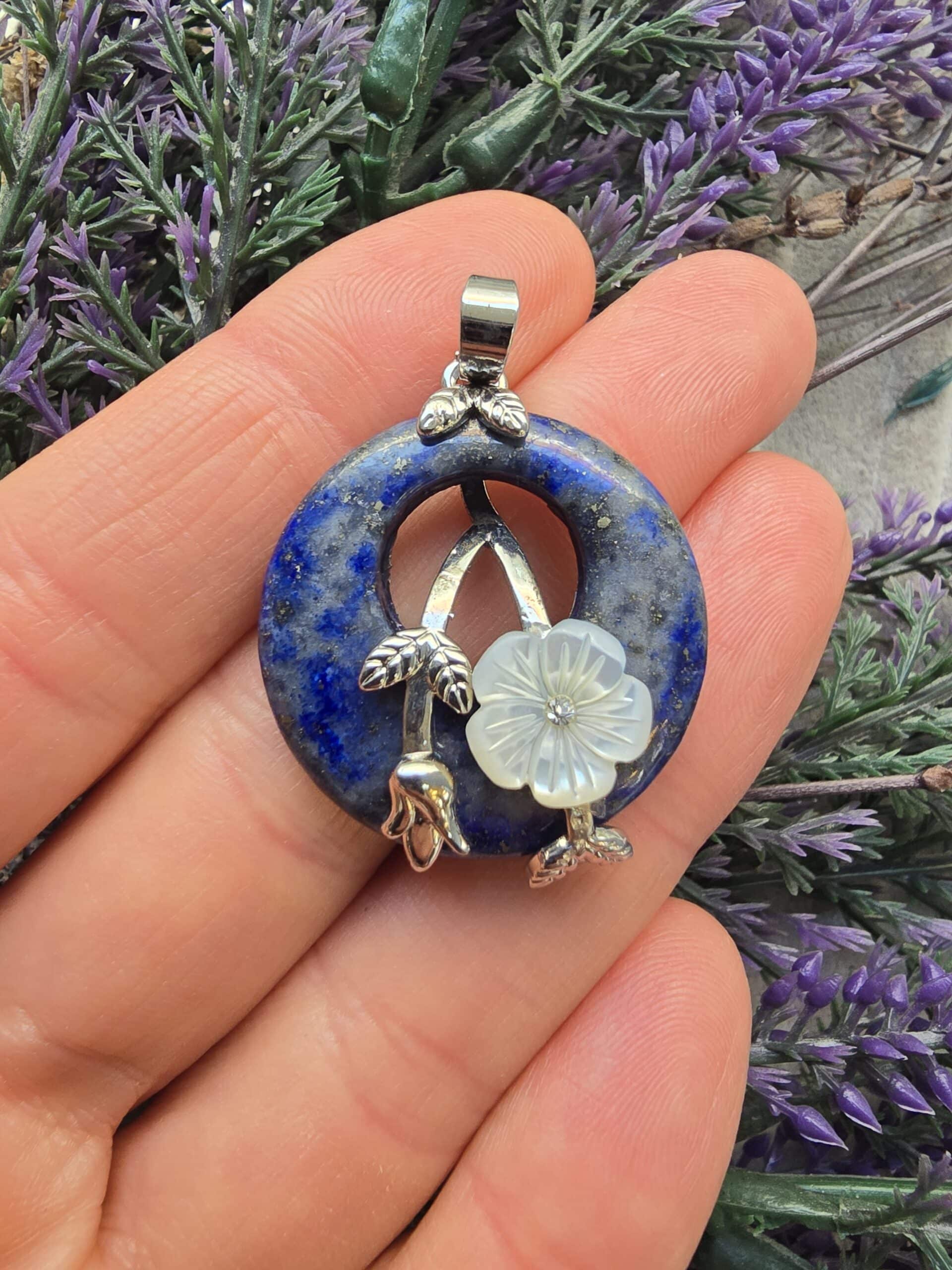 Sedef Çiçekli Lapis Taşı Kolye Ucu