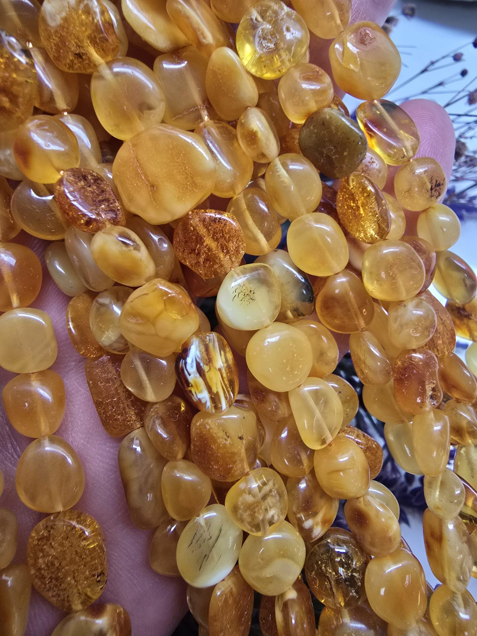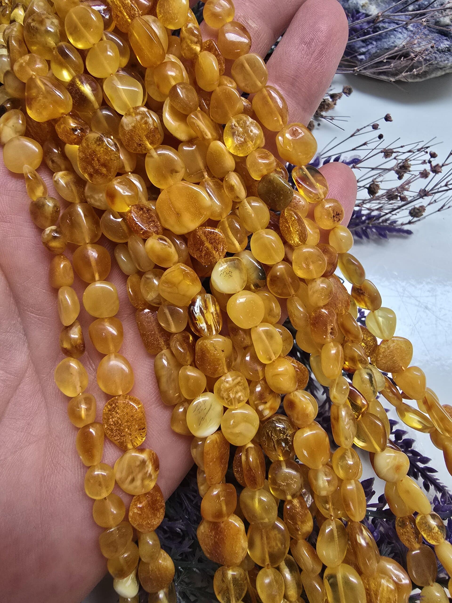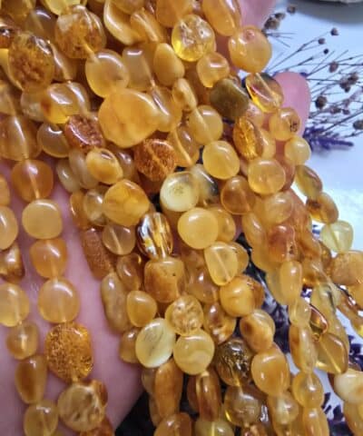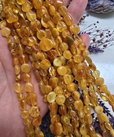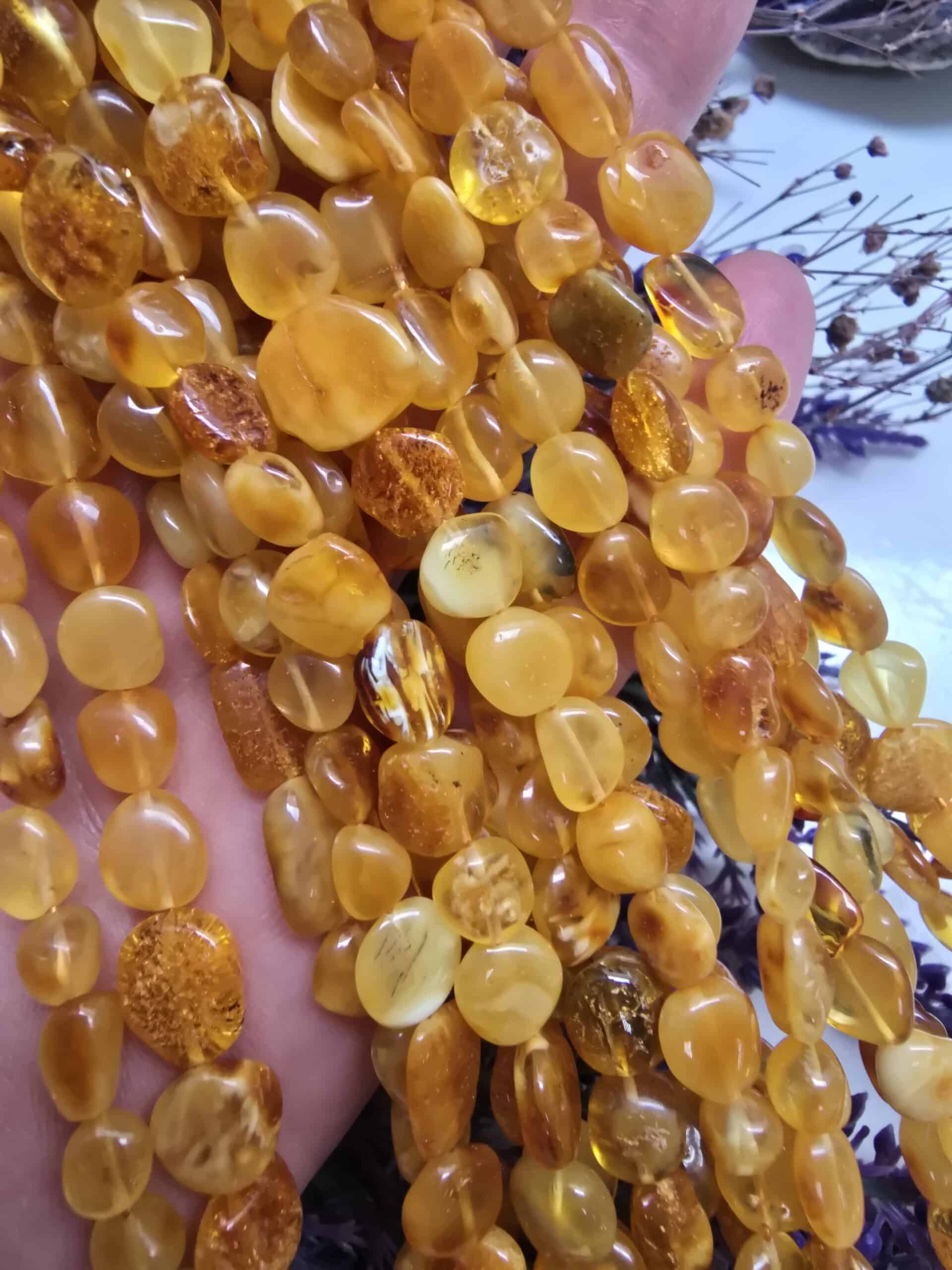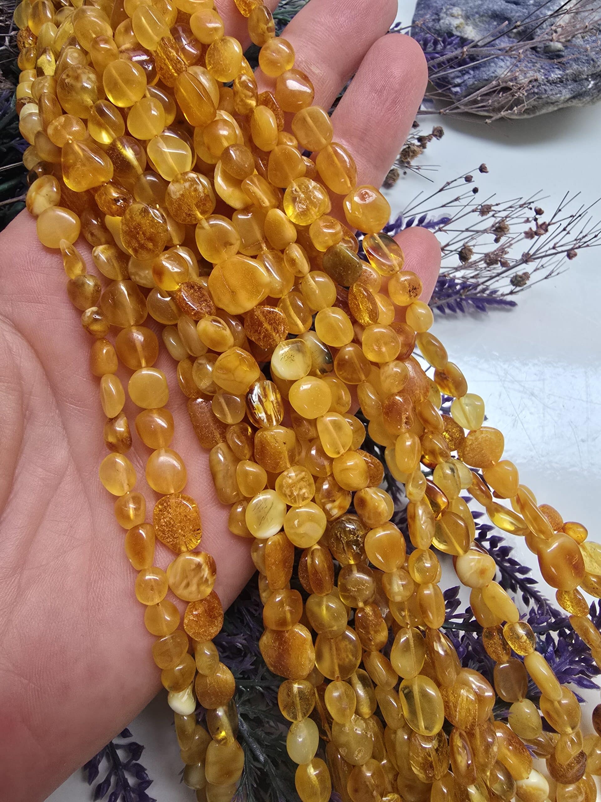 Seffaf Sarı Amorf Kehribar Uzun Dizi 45 CM
