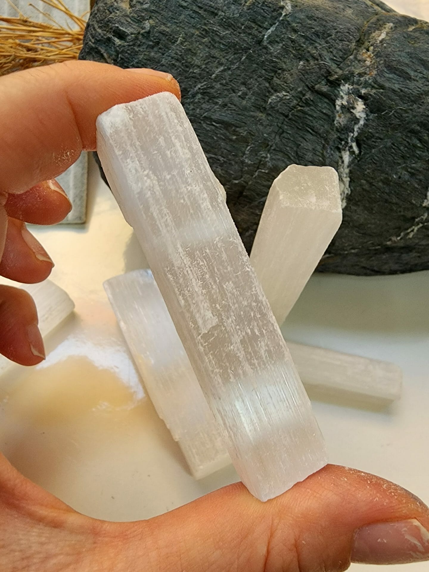 - 80×20 mm büyük boy çubuk selenit kristal taşıdır.