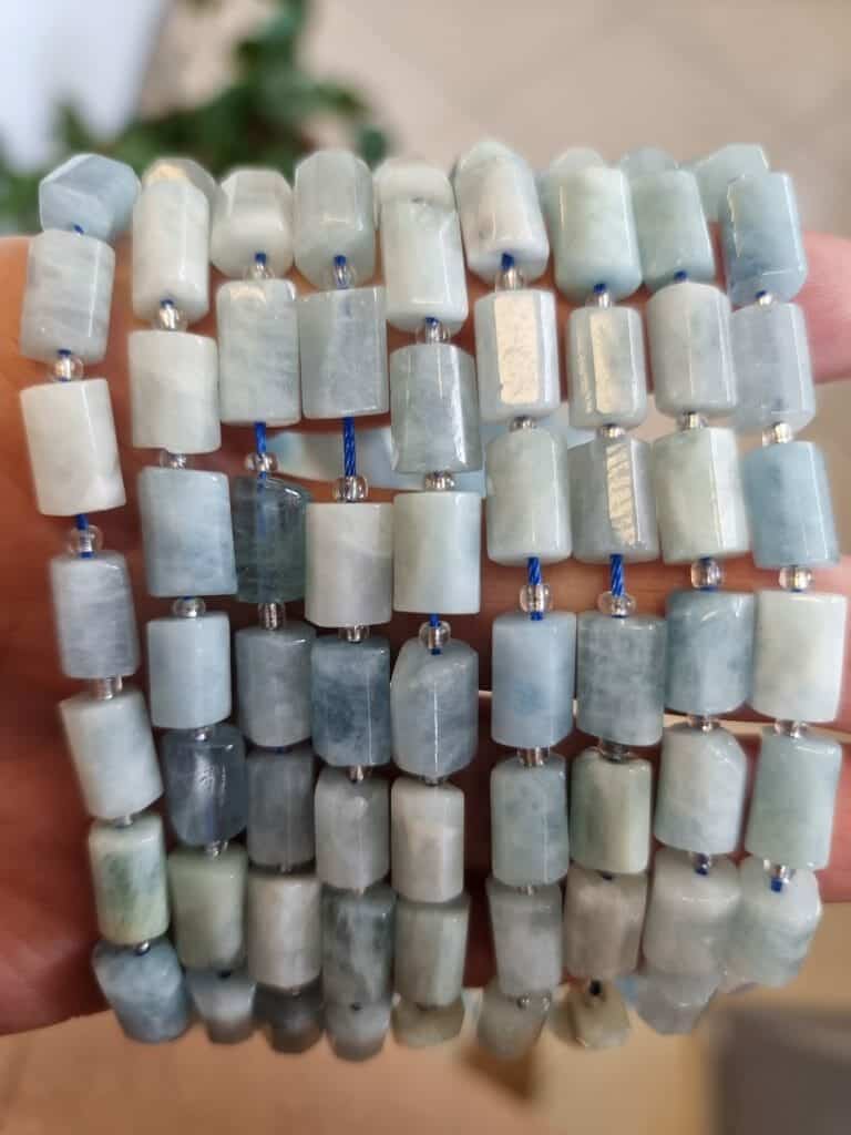 - 6×10 mm silindir akuamarin dizi doğal taş 32 taneden oluşur.