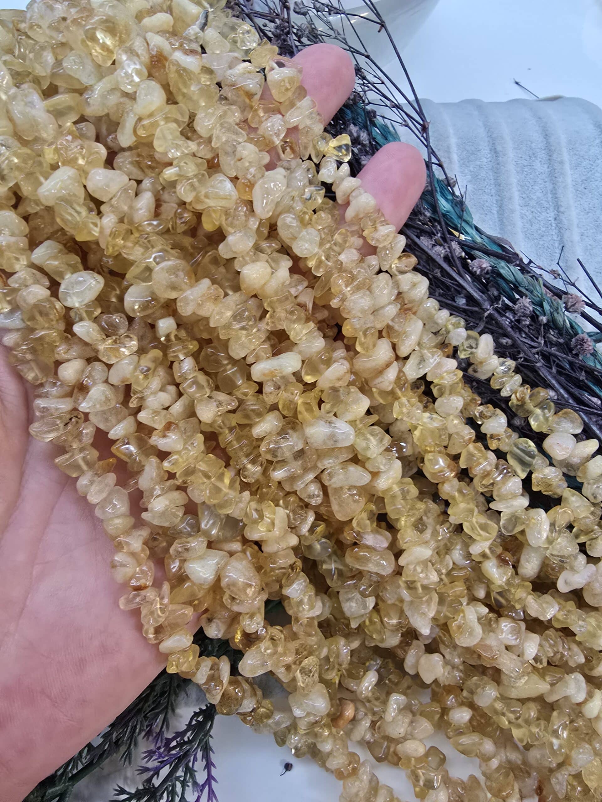 - Doğal kırık sitrin taşlarının boyutları 8 mm ile 14 mm arasında olup irili ufaklı olarak dizilmişlerdir.