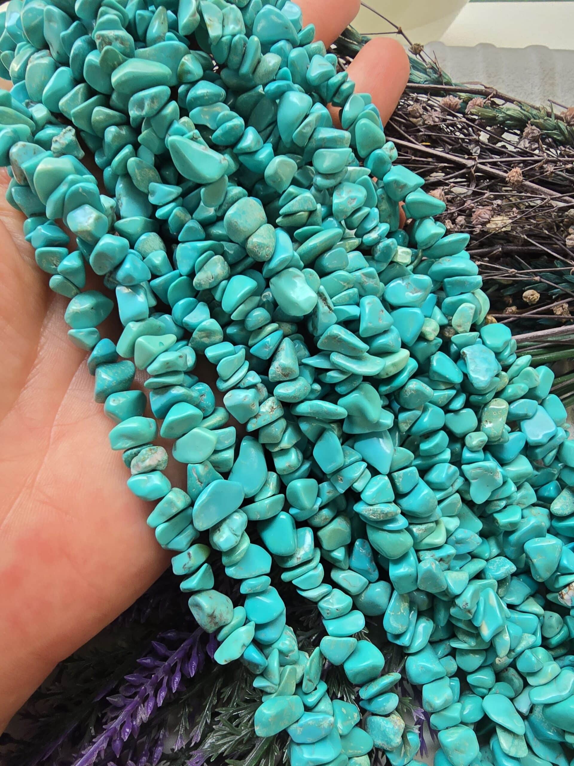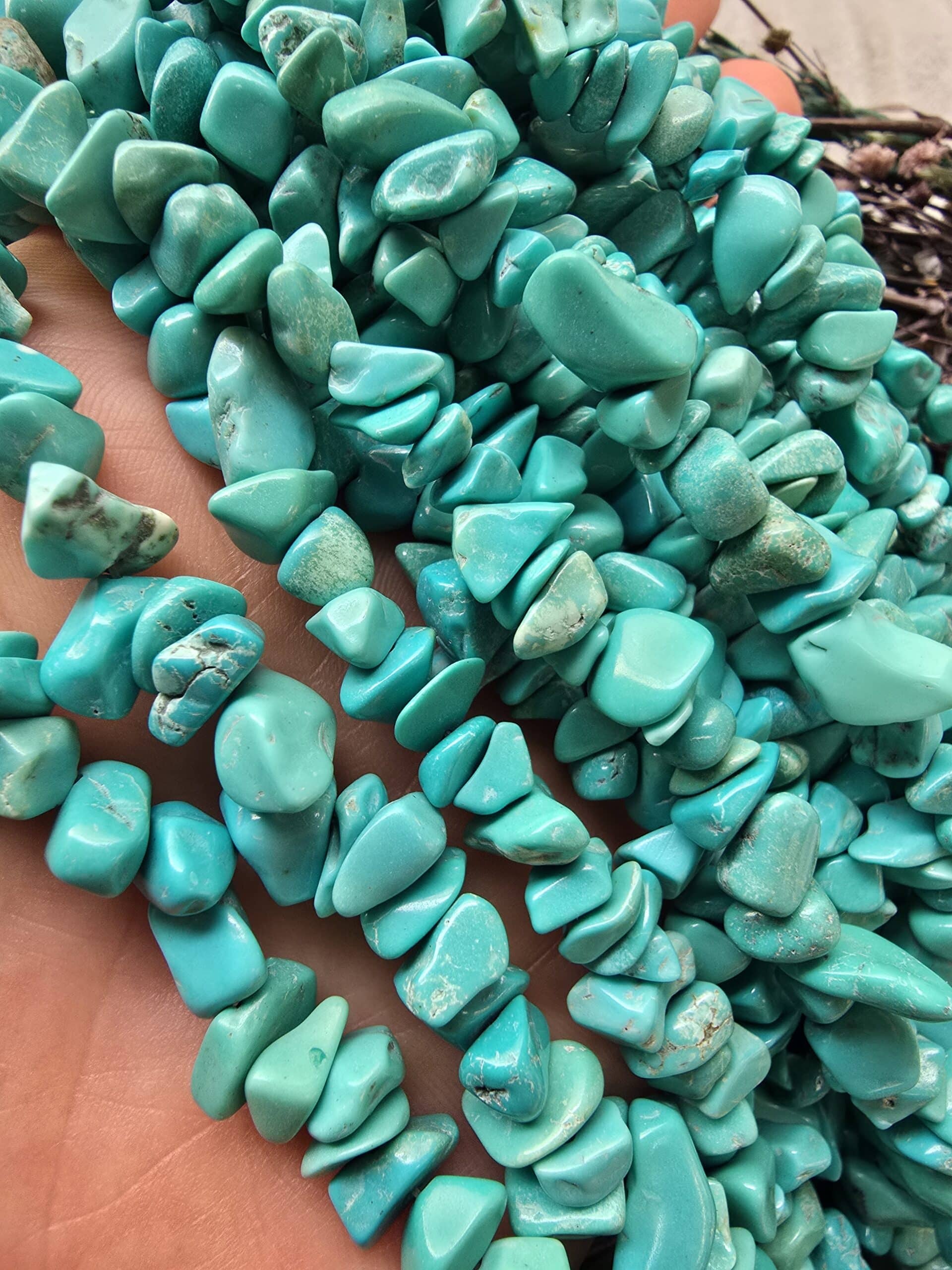 - Turkuaz kırık doğal taş dizisi tamburlanmış olup keskin yüzeyler taşlanmıştır. Ciltte teması halinde hiçbir rahatsızlık verebilecek keskinlik kalmamıştır.