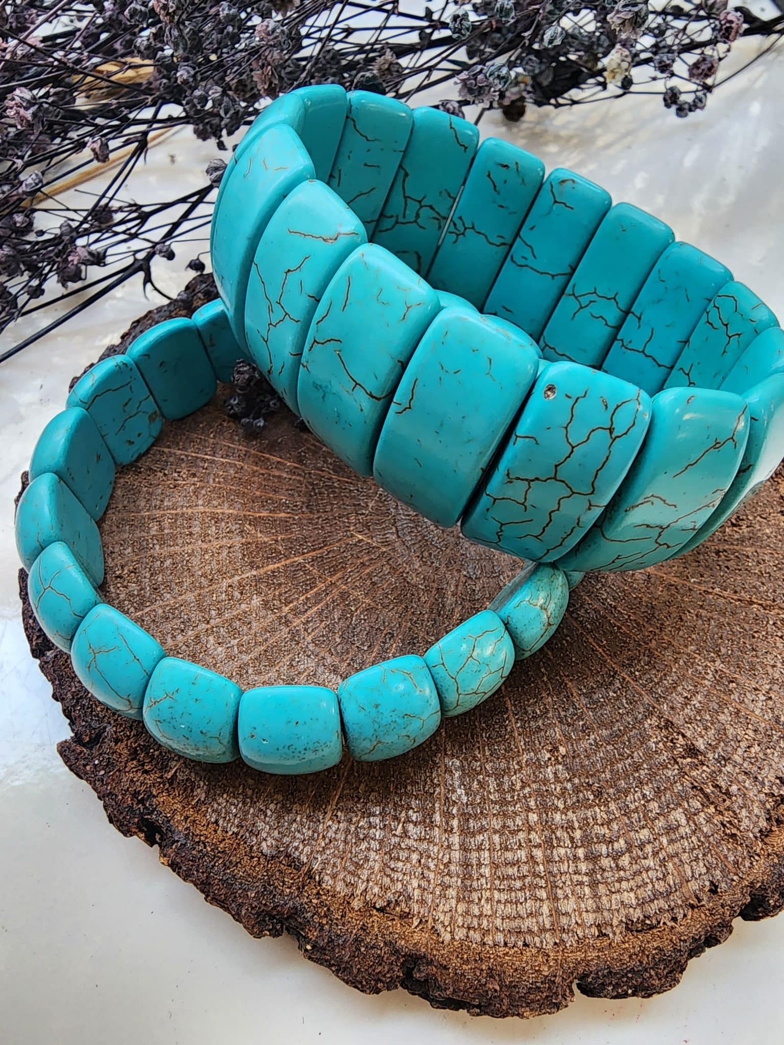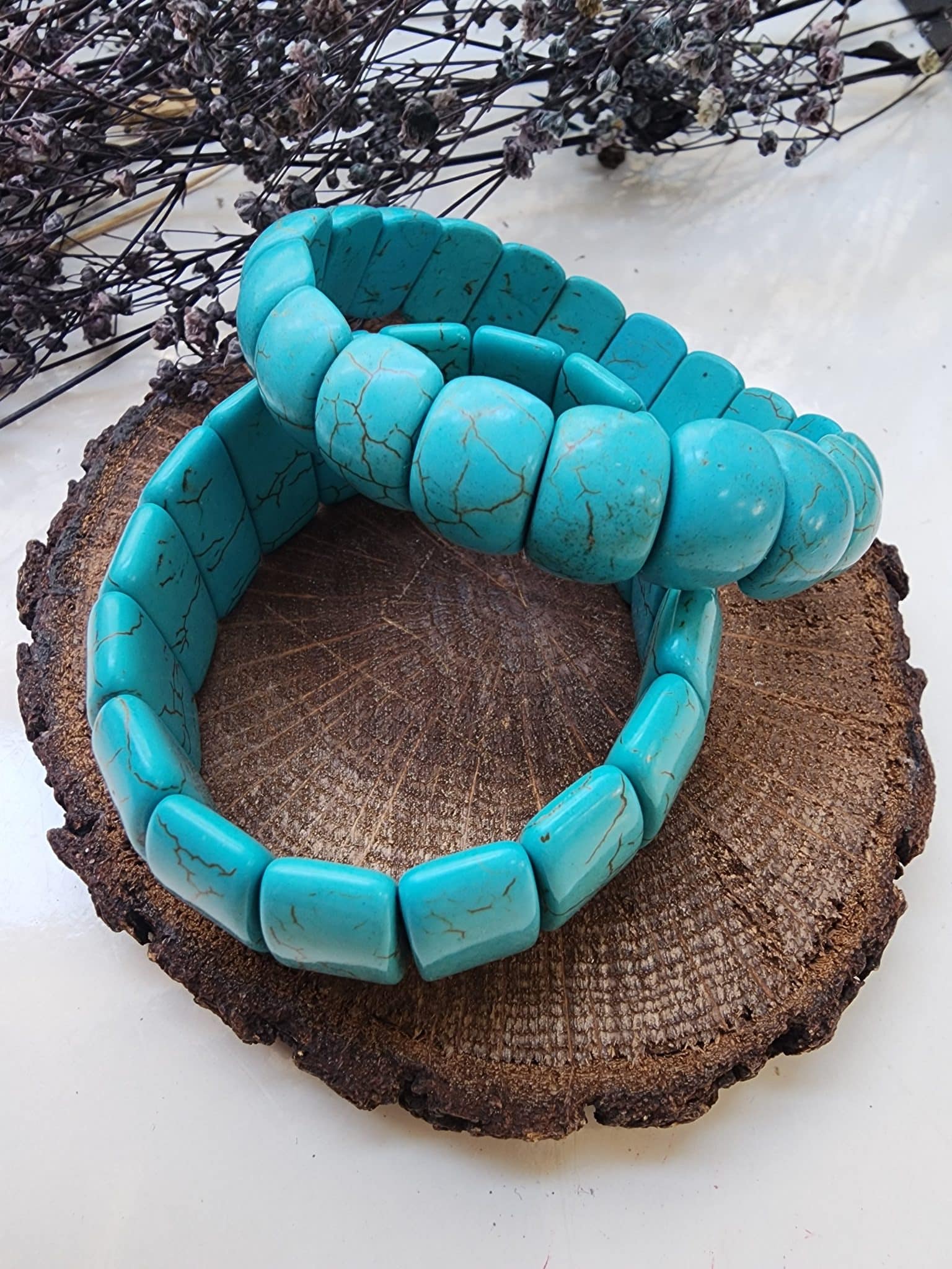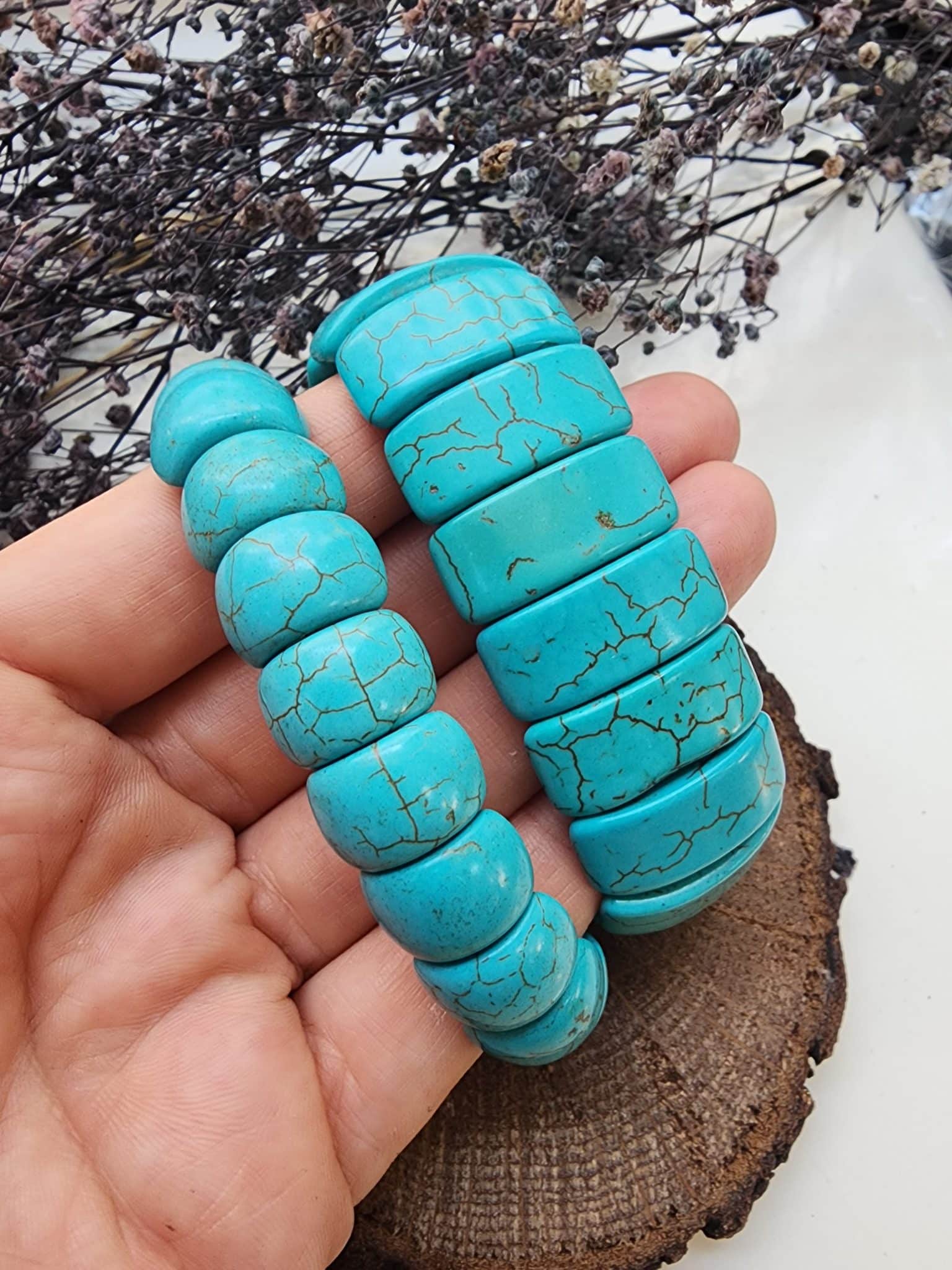 - Turkuaz bileklik doğal taşlar , doğal taşın damar kesimine bağlı renk ve görünüm değişikliği gösterebilir. Bu tamamen doğal oluşundan dolayıdır.