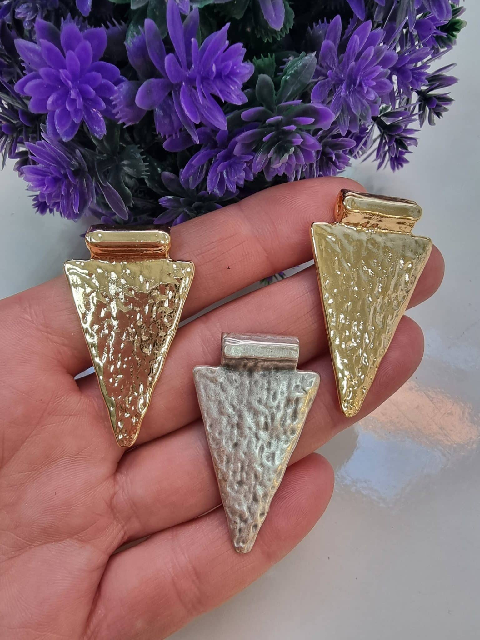 - Üçgen Zamak Döküm Kolye Ucu Gümüş renktir.