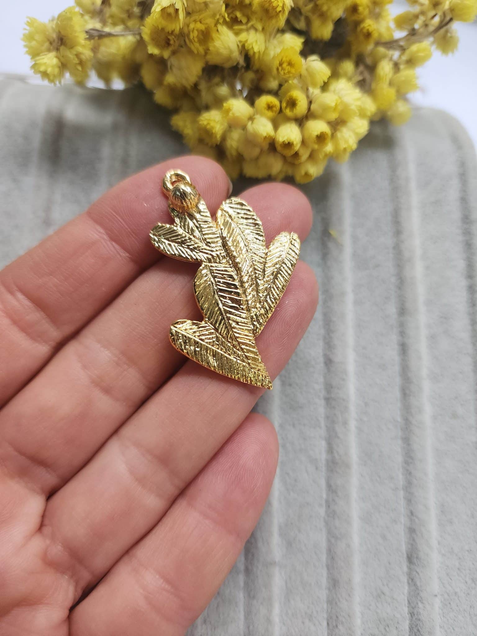 - Yaprak Zamak Döküm Kolye Ucu Altın renktir.