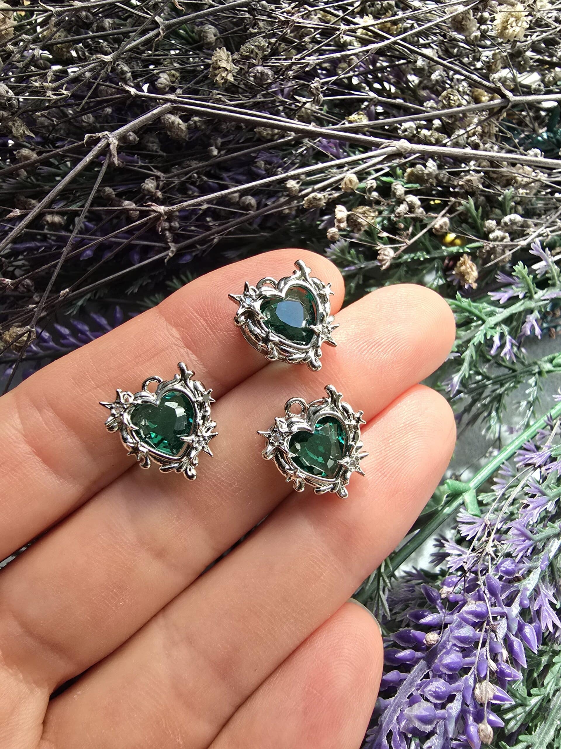 Yeşil Taşlı Kalp Charm Kolye Ucu