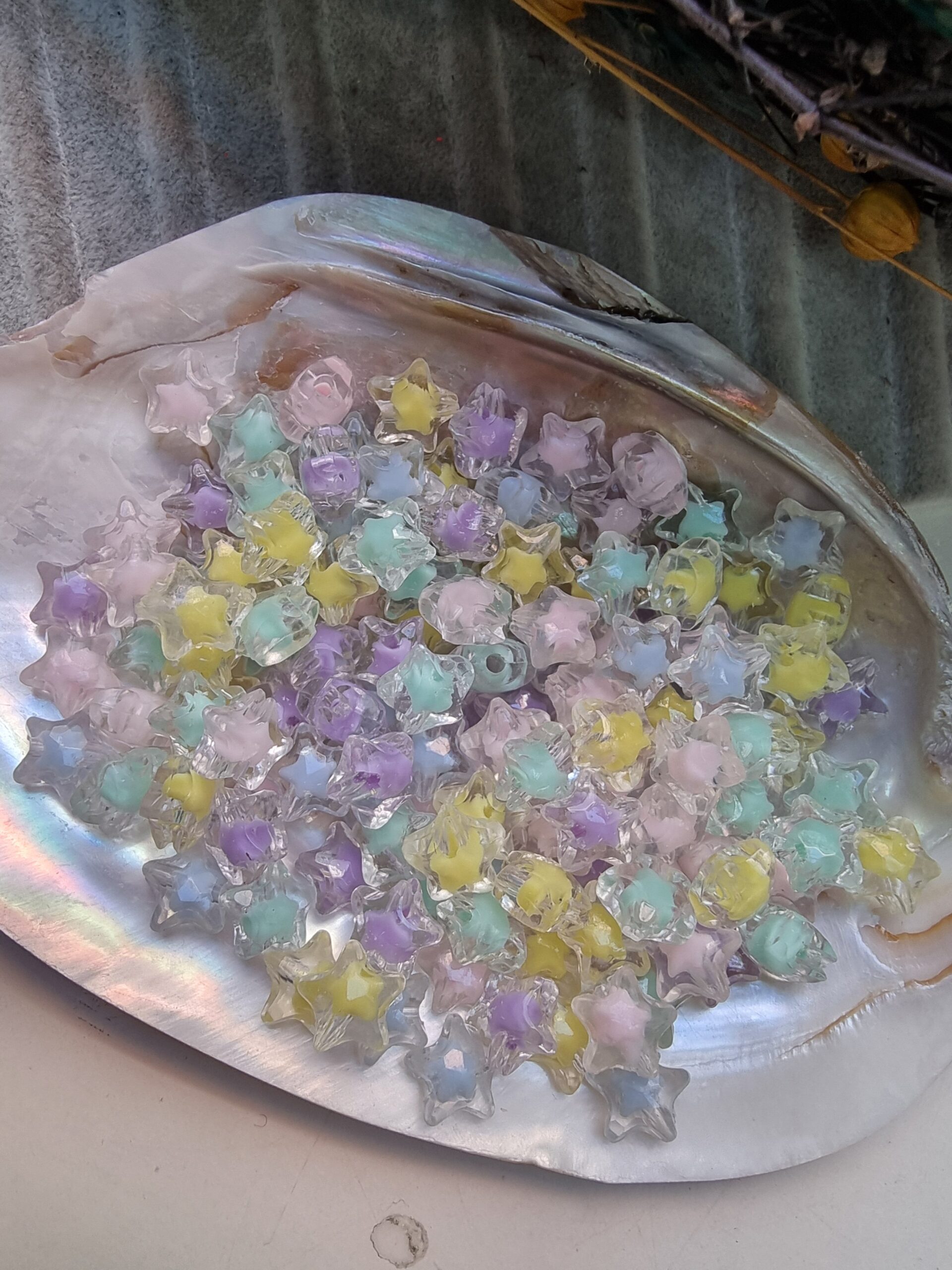 Yıldız Cam Görünümlü Renkli Akrilik Boncuk
