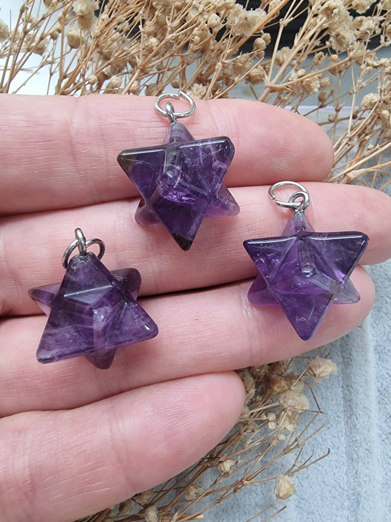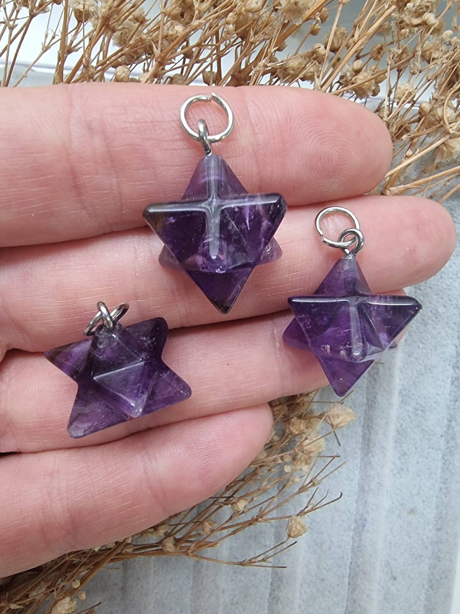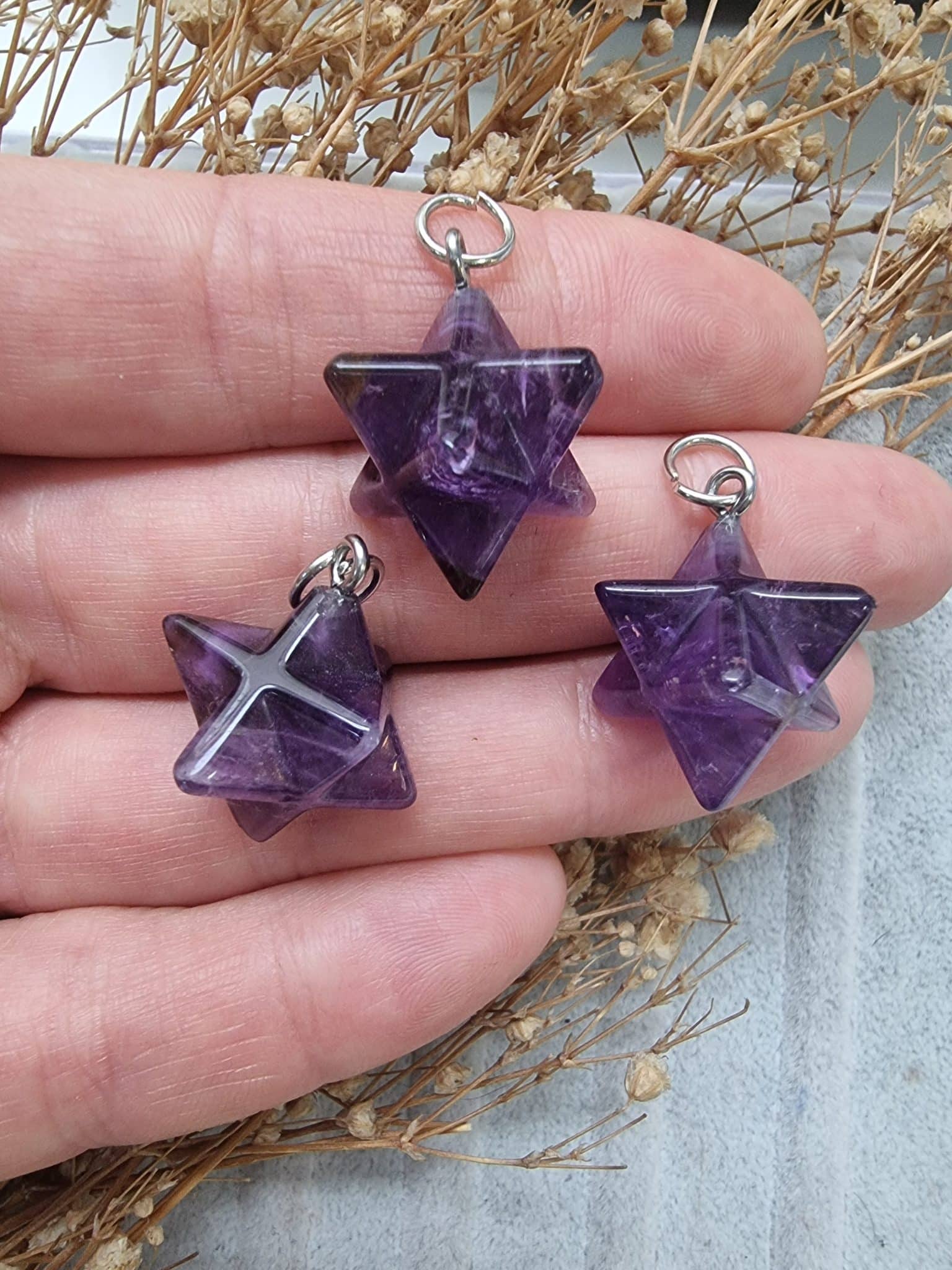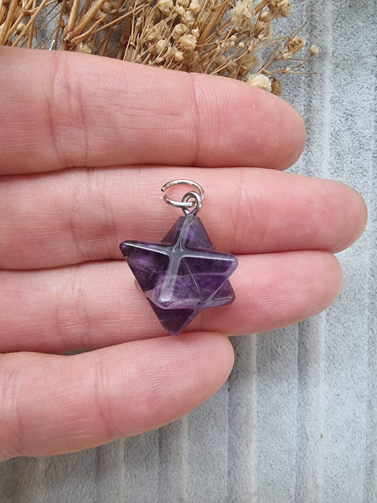 - Hakiki ametist doğal taş yıldız şekli verilmiştir.