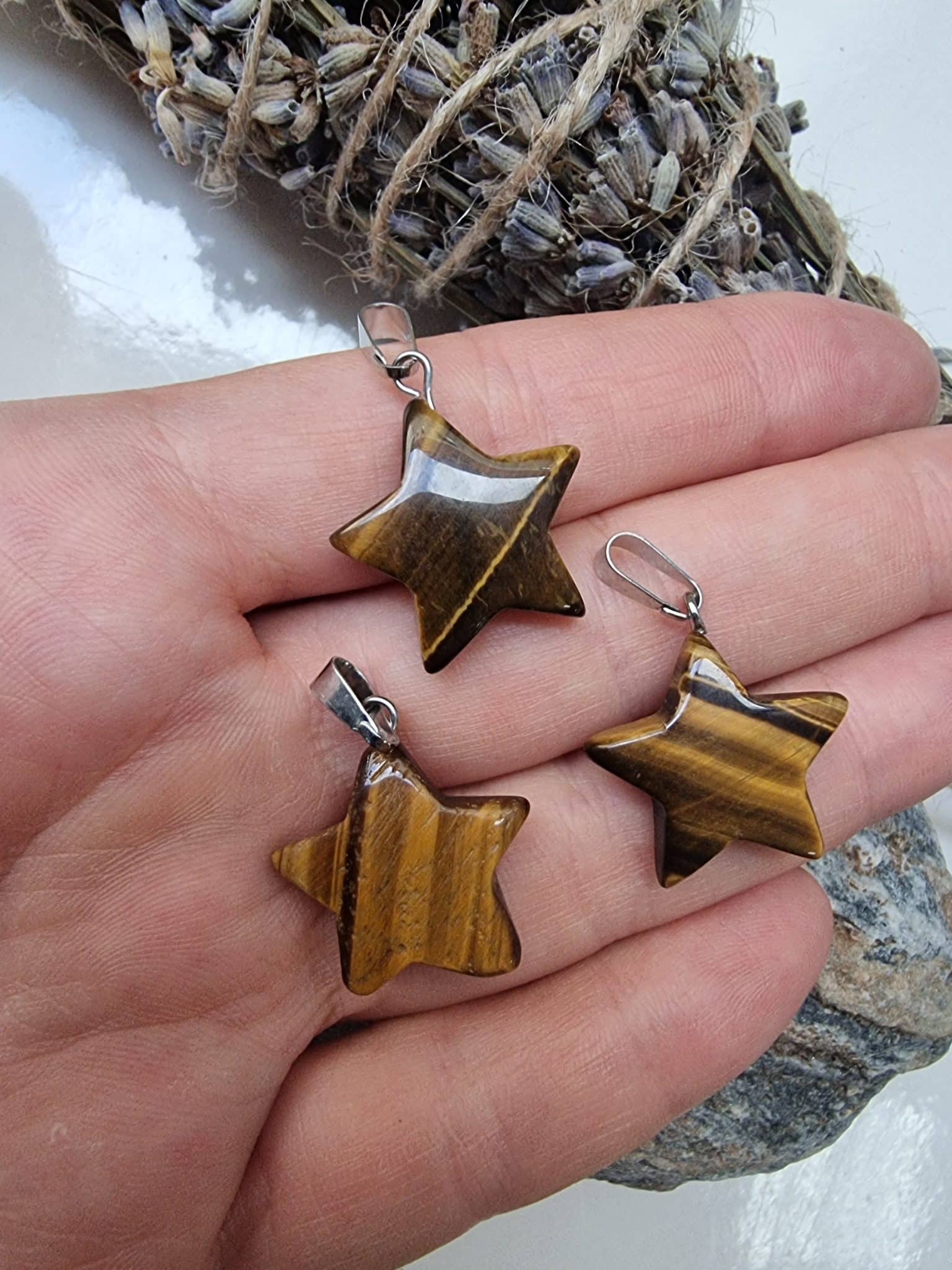 - Yıldız Kaplan Gözü taşları kolye ucudur.