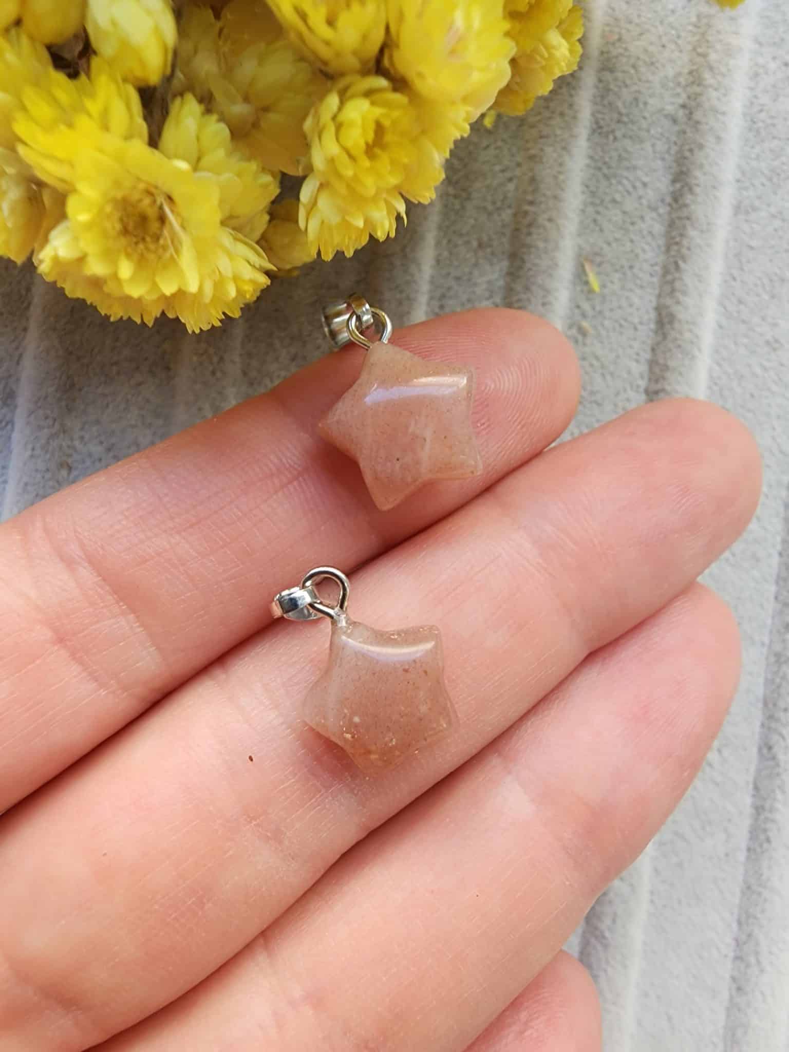- Yıldız biçimli Güneş taşı kolye ucu ve küpe sallantısı olarak kullanıma uygundur.