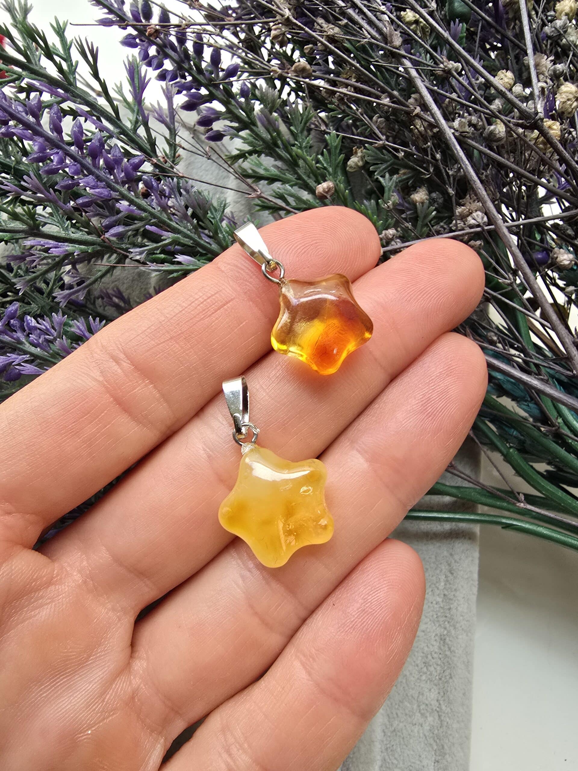 Yıldız Şekilli Kehribar Kolye Ucu