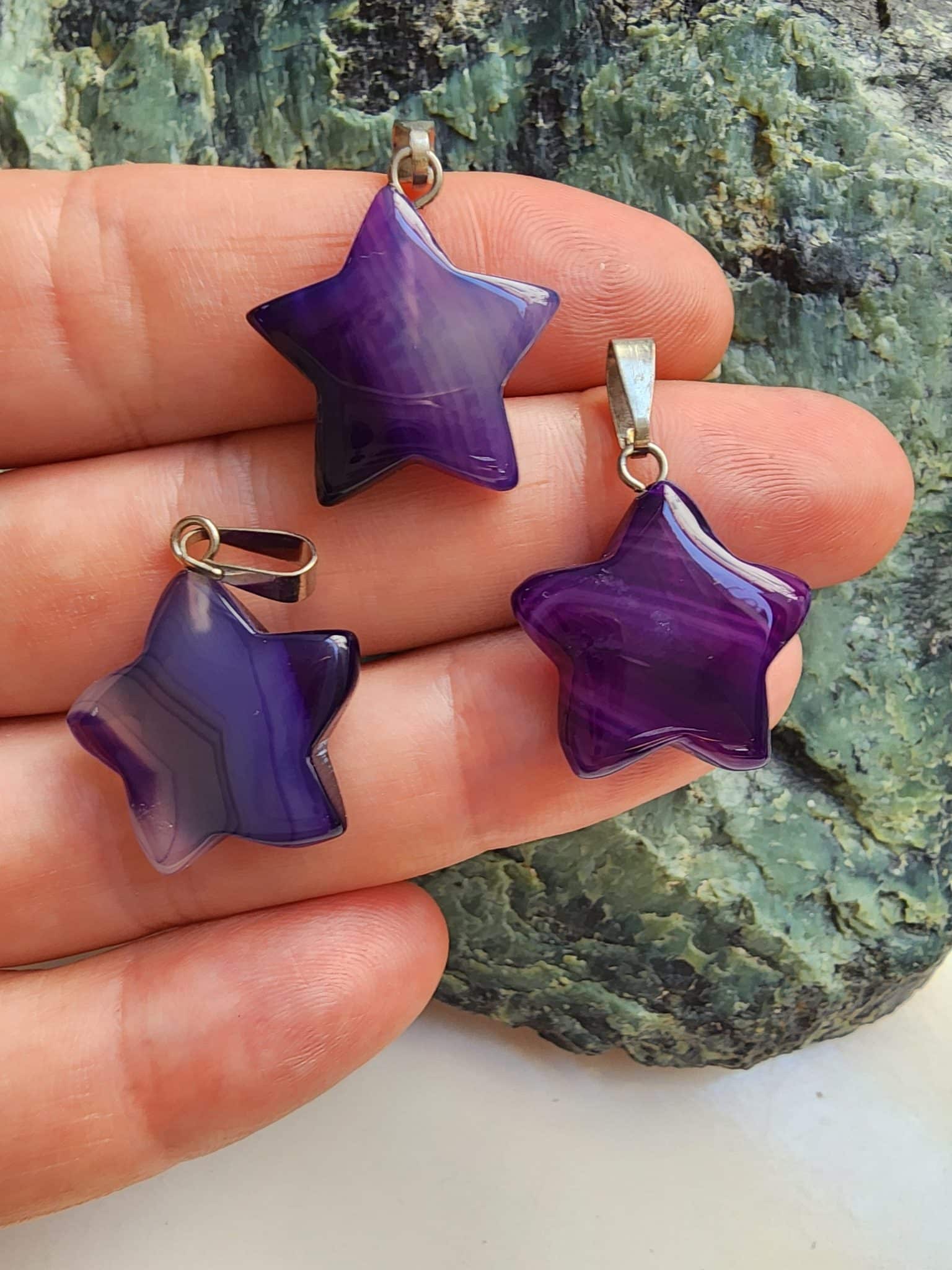 Yıldız Şekilli Mor Akik Kolye Ucu :