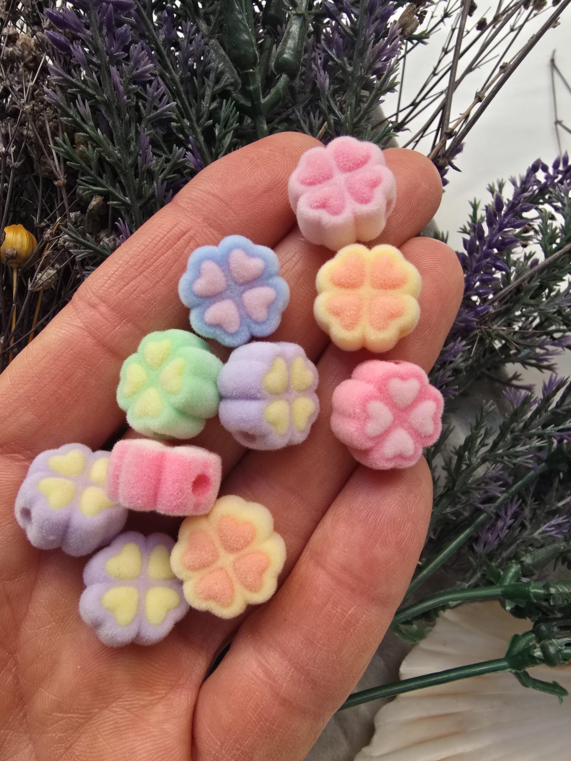 Yonca Şekilli Kadife Yüzeyli Renkli Boncuklar