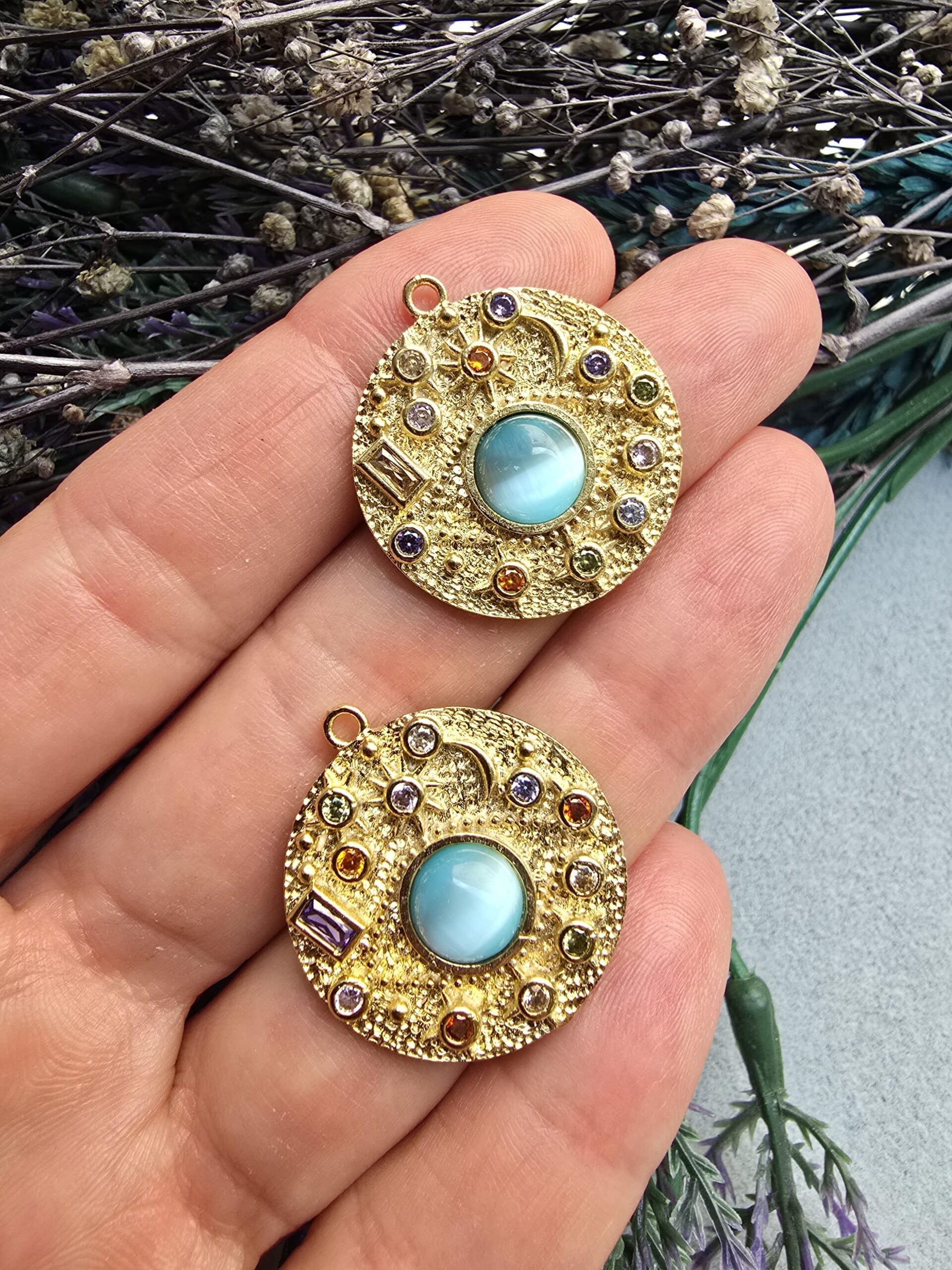 Zirkon Taşlı Gezegenler Madalyon Kolye Ucu