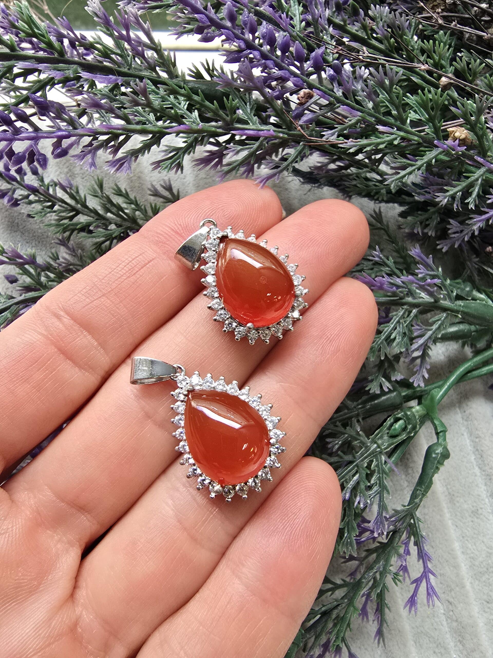 Zirkonlu Damla Akik Doğal Taş Kolye Ucu