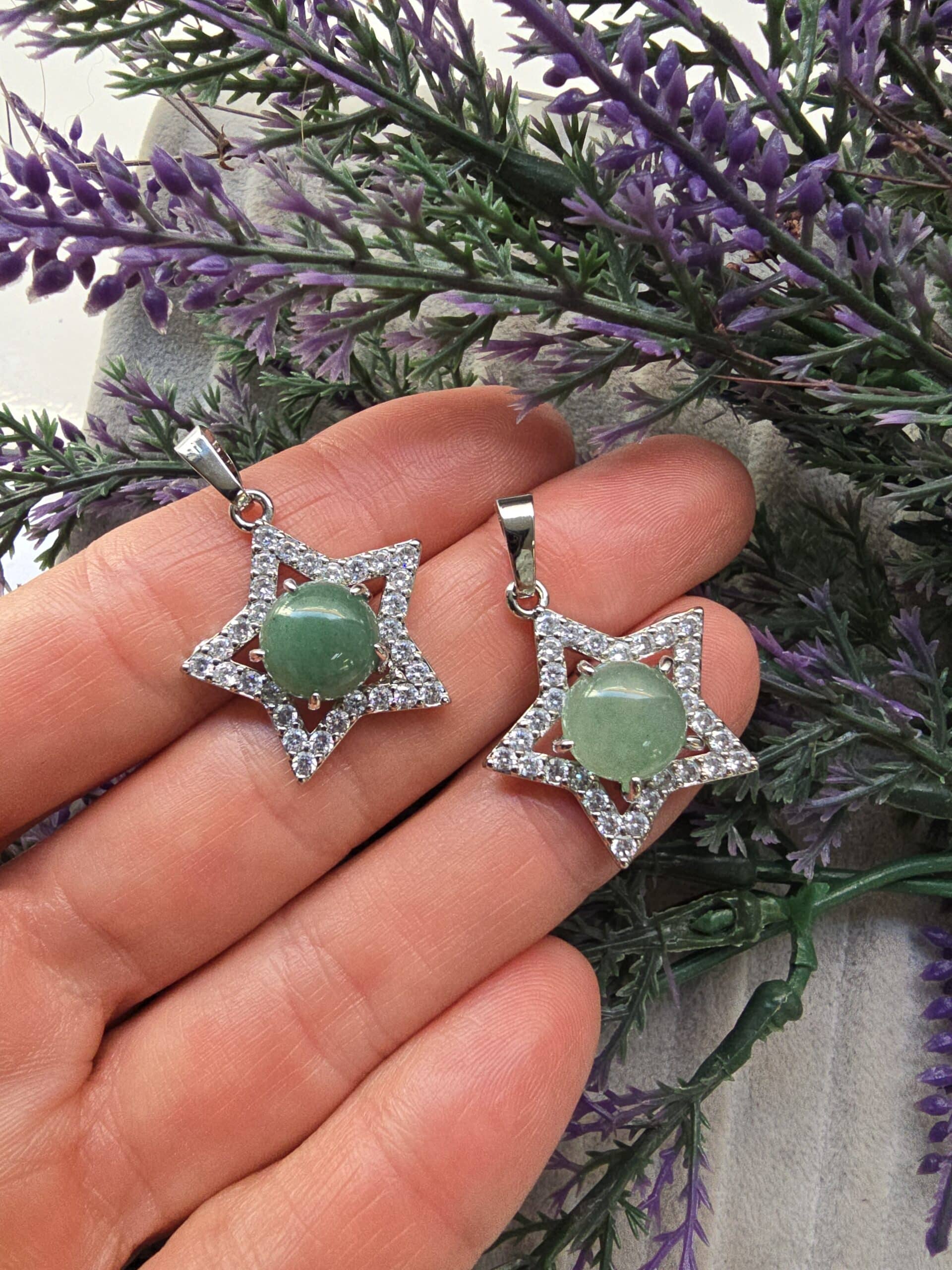 Zirkonlu Yıldız Aventurin Doğal Taş Kolye Ucu
